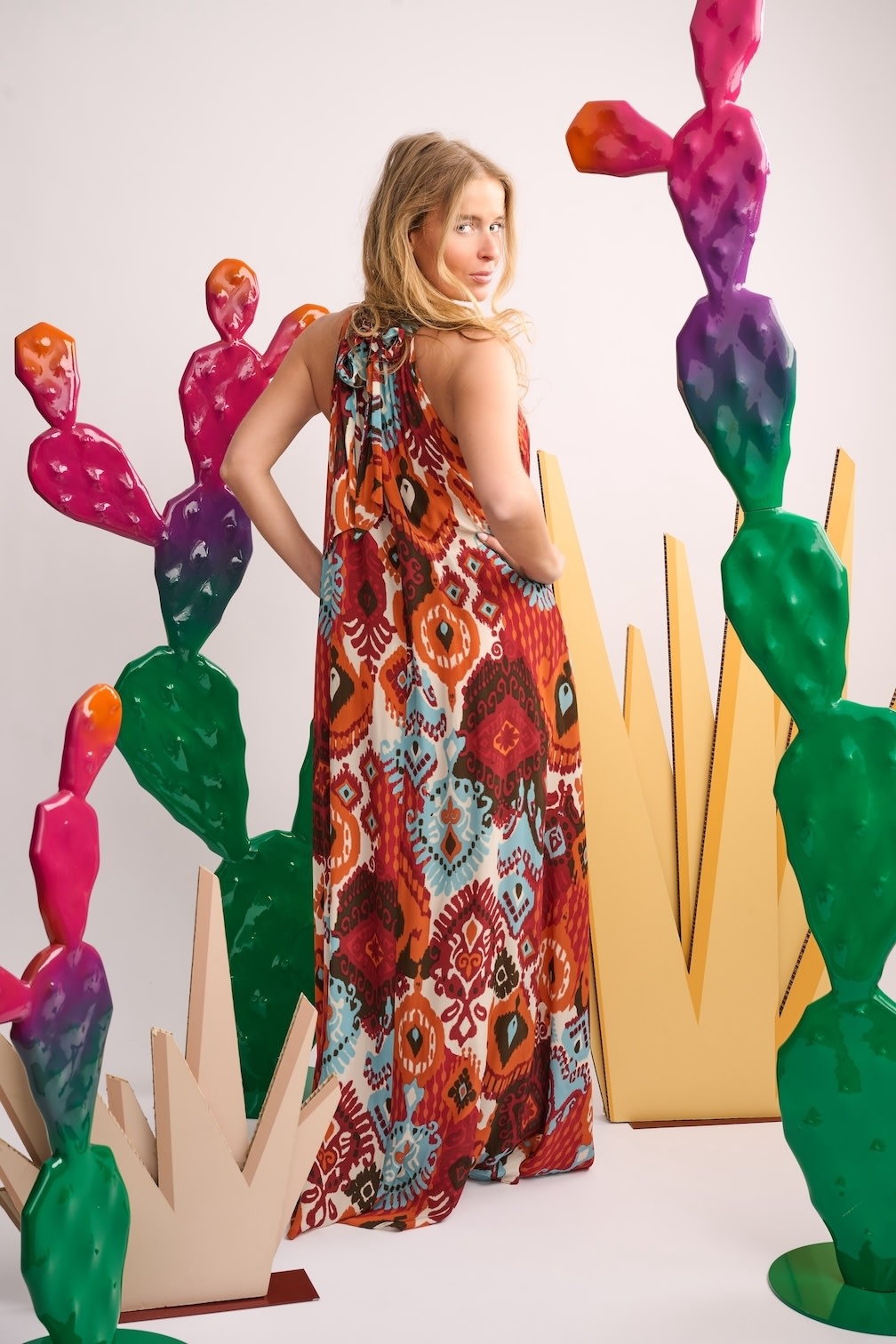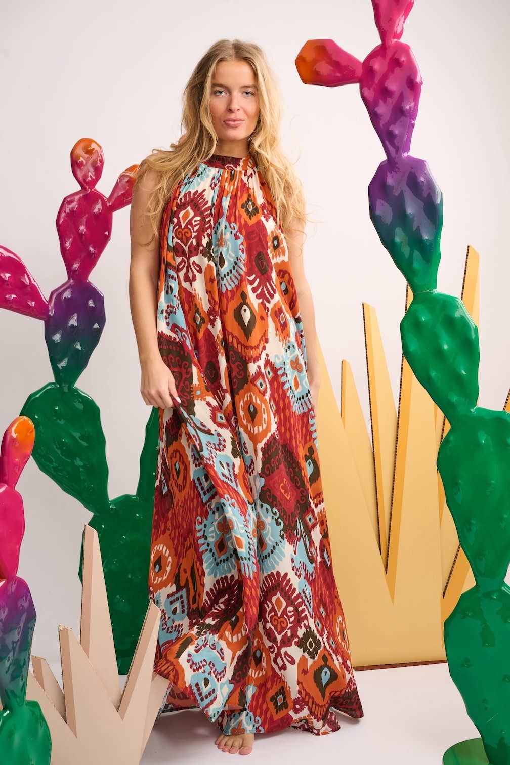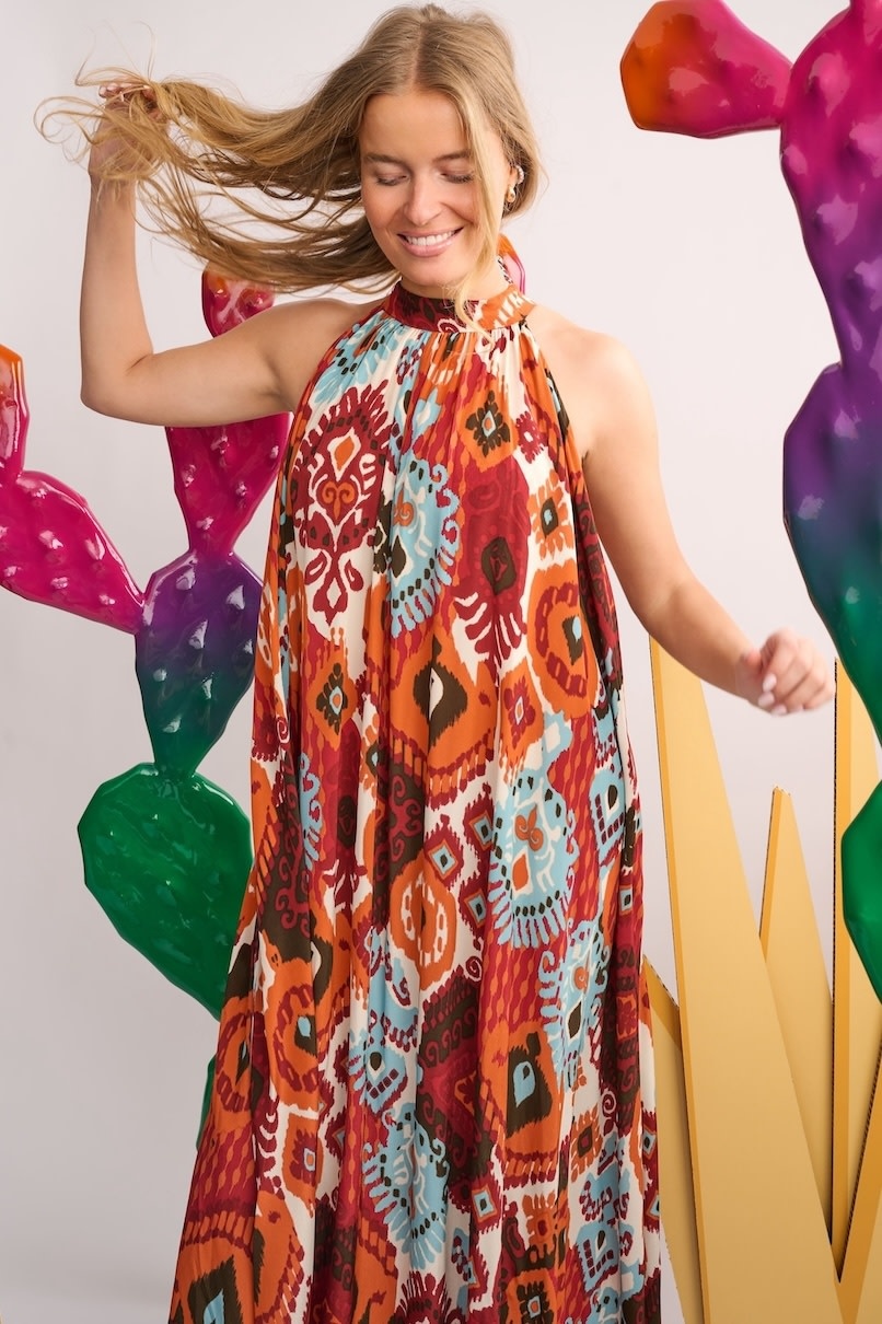 Go for a luxurious look with this maxi dress by Calarena. A real pleasure to wear thanks to the pleasant fabric and comfortable fit. You can wear this dress over a swimsuit or bikini for a refreshing drink at the pool bar or on a relaxing day in the city.