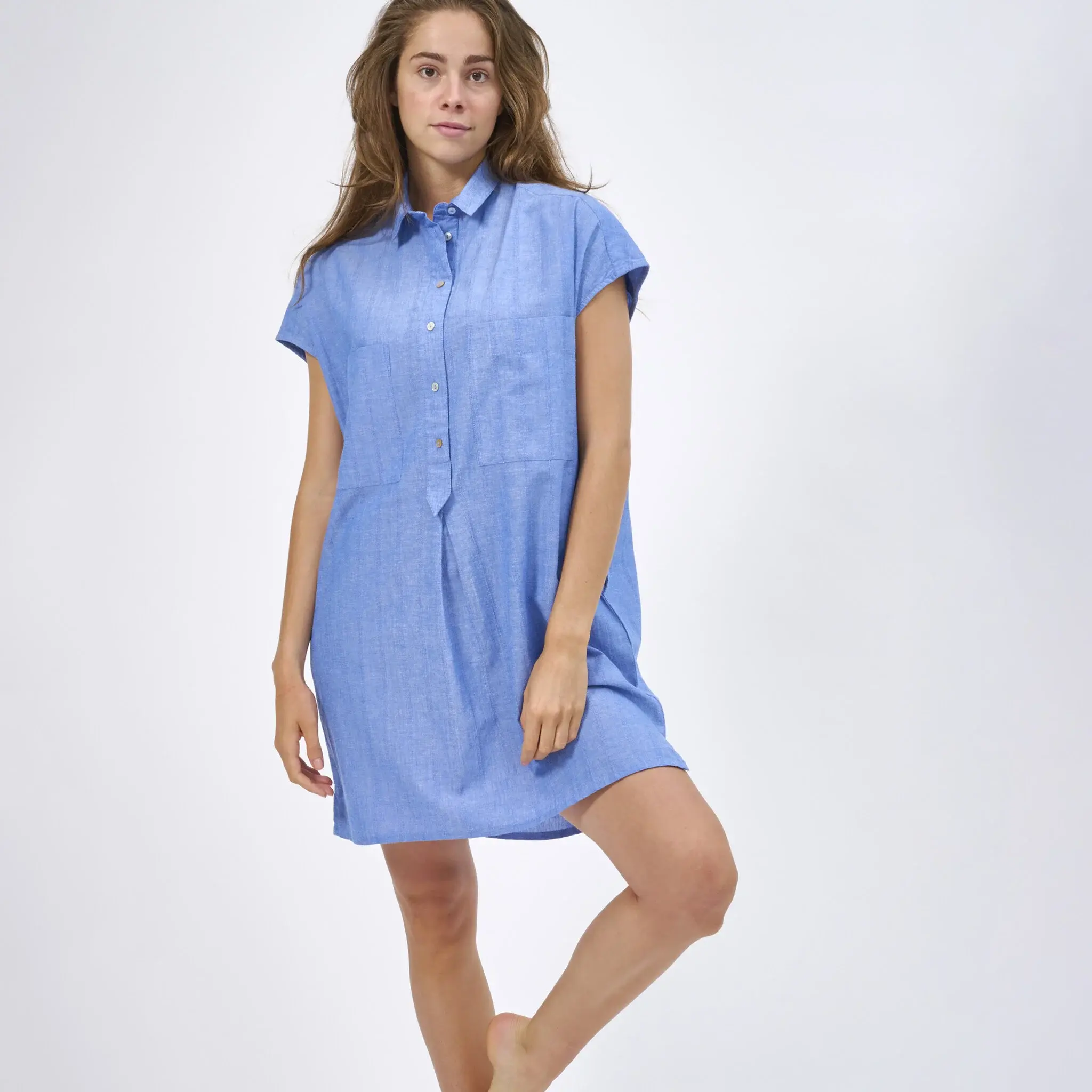 This stylish dress by Dorélit is made of a soft, breathable, and lightweight cotton fabric, features a relaxed fit, and short dropped shoulder sleeves. Wear the dress at night for a wonderful night's sleep or during the day at the beach or in the city.