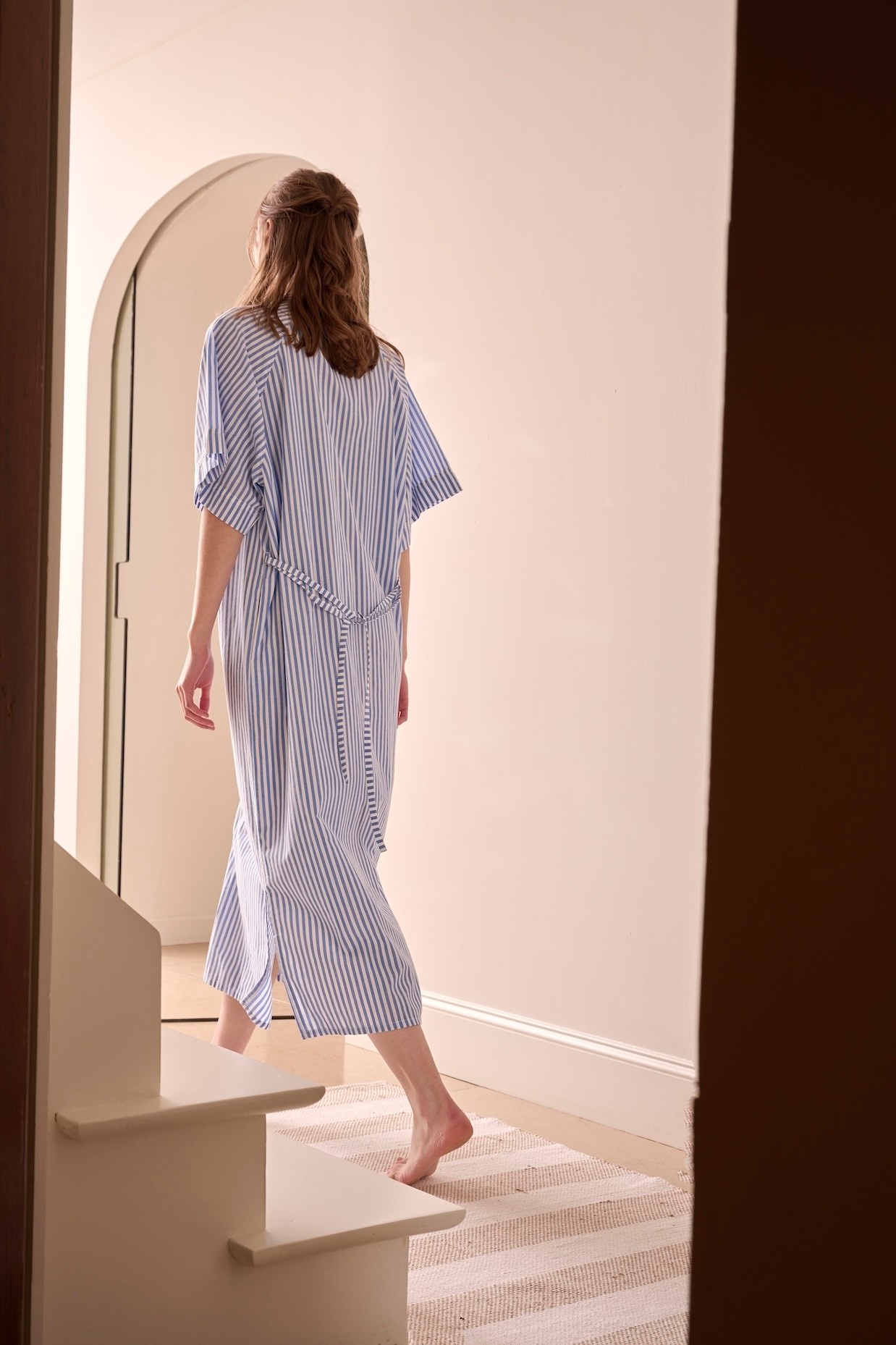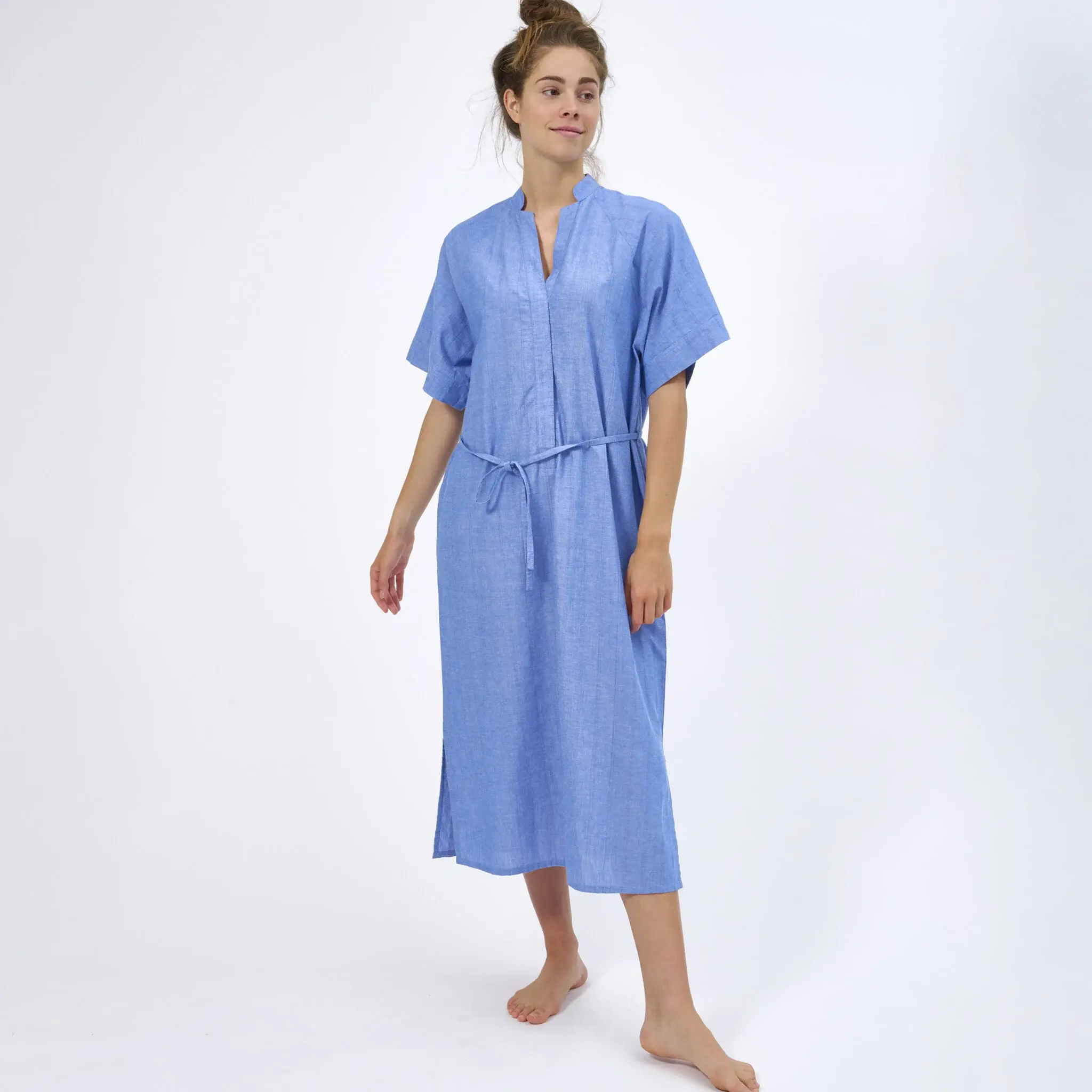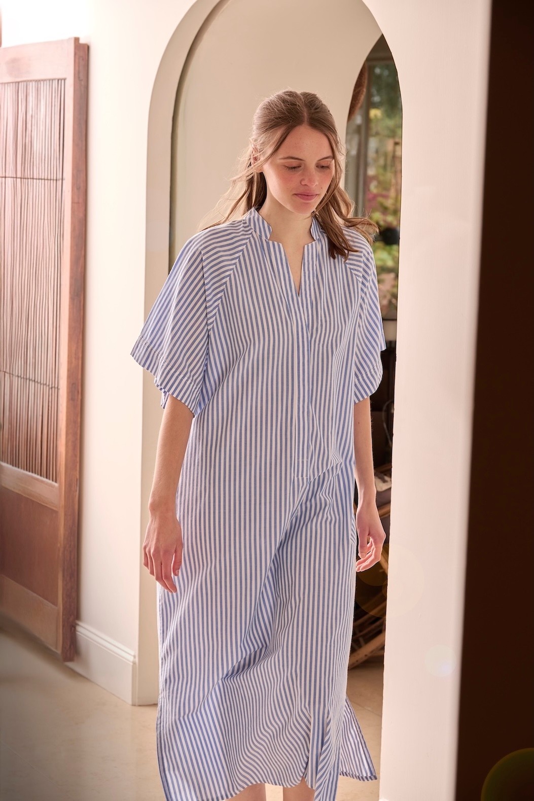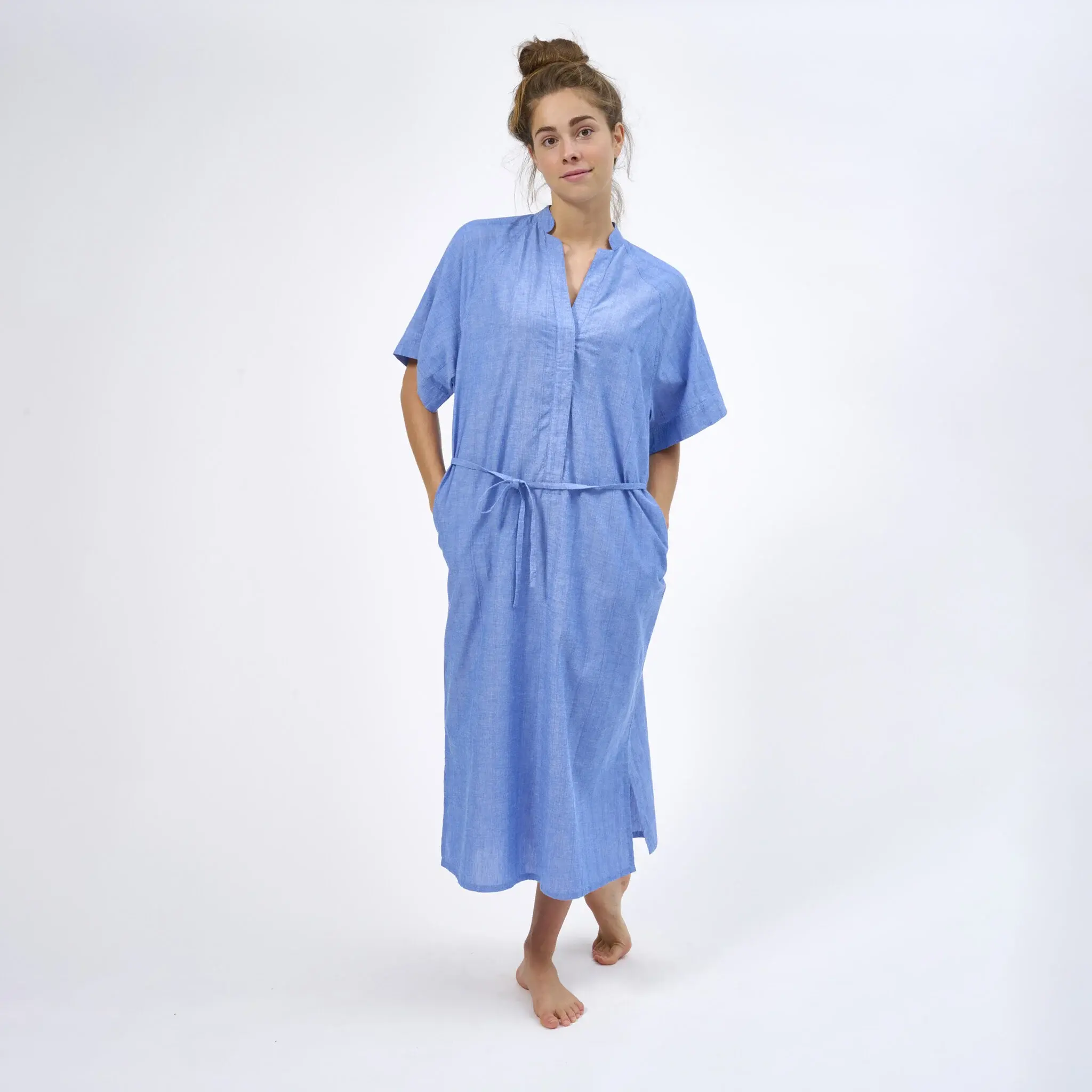 Combine elegance and comfort with this Dorélit summer dress. The long dress is made of lightweight cotton and is embellished with a half-open closure, belt and raglan sleeves.