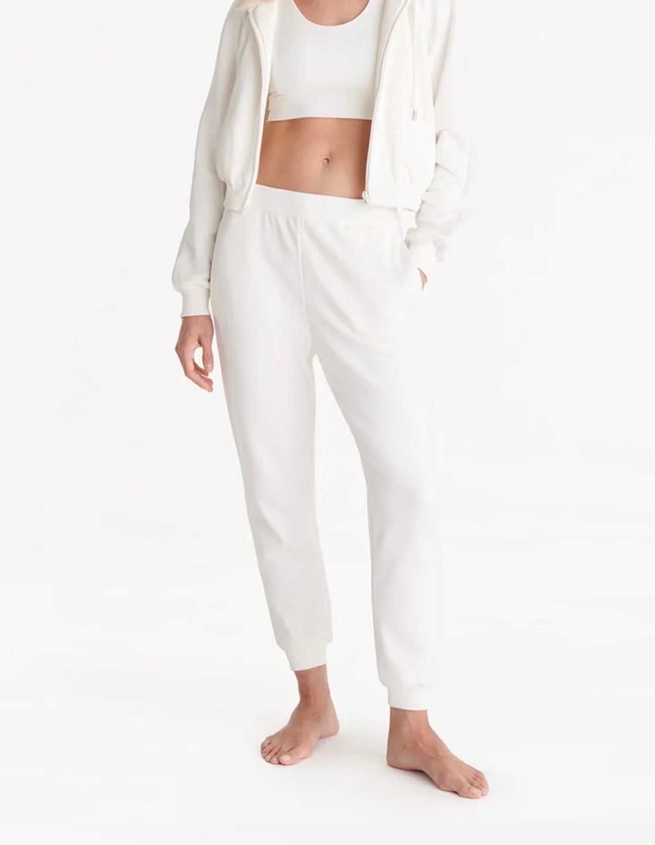The Céline jogging bottoms by Eres stand out for their comfortable, flexible fleece fabric. The ribbed edging and waist drawstring add to the sporty-chic charm of the piece.
