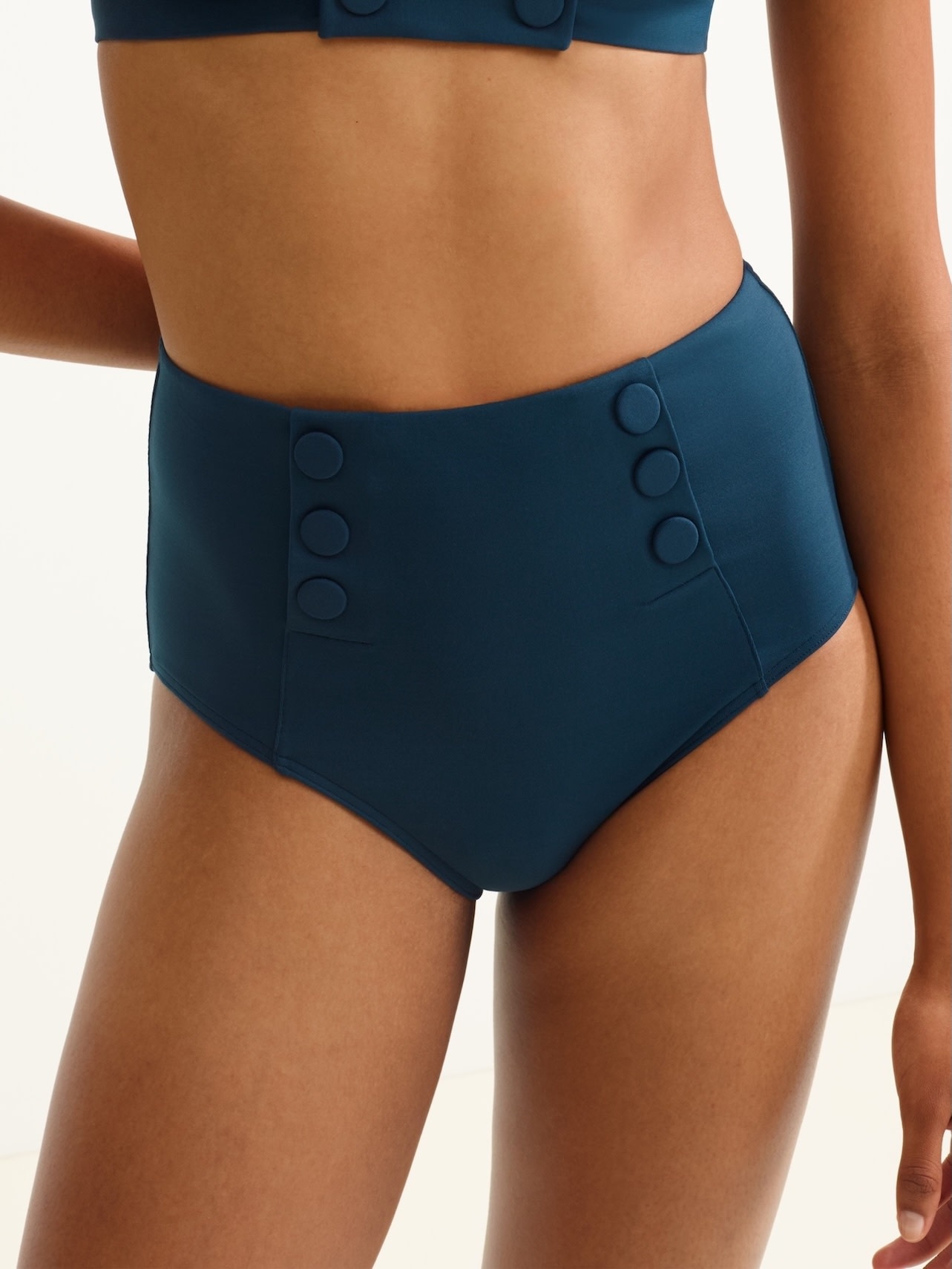 The Flaneuse bikini-bottom by Eres offers more coverage with its high-waisted shape. The press studs create a retro feel, while the cut sculpts all silhouettes.