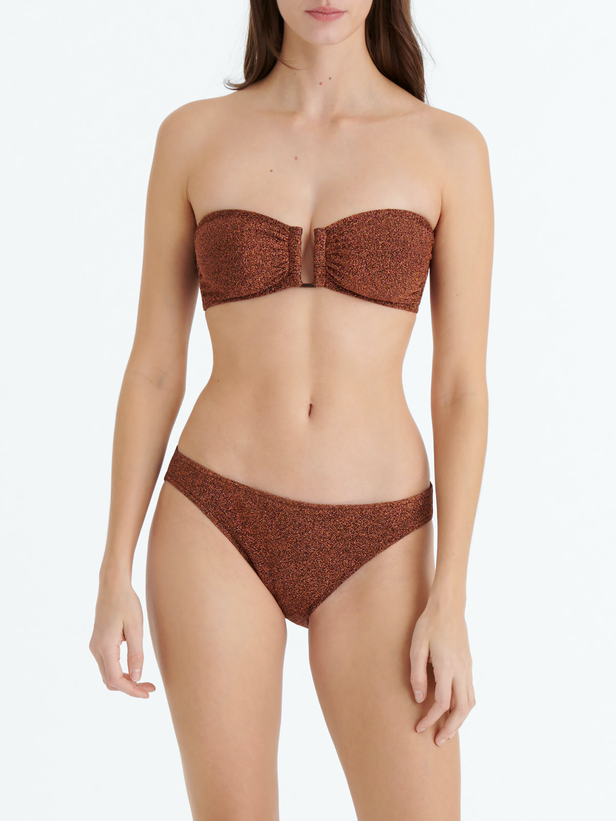Pair the Etincelant bikini-bottom with the Flamboyant bandeau for a radiant, feminine set.