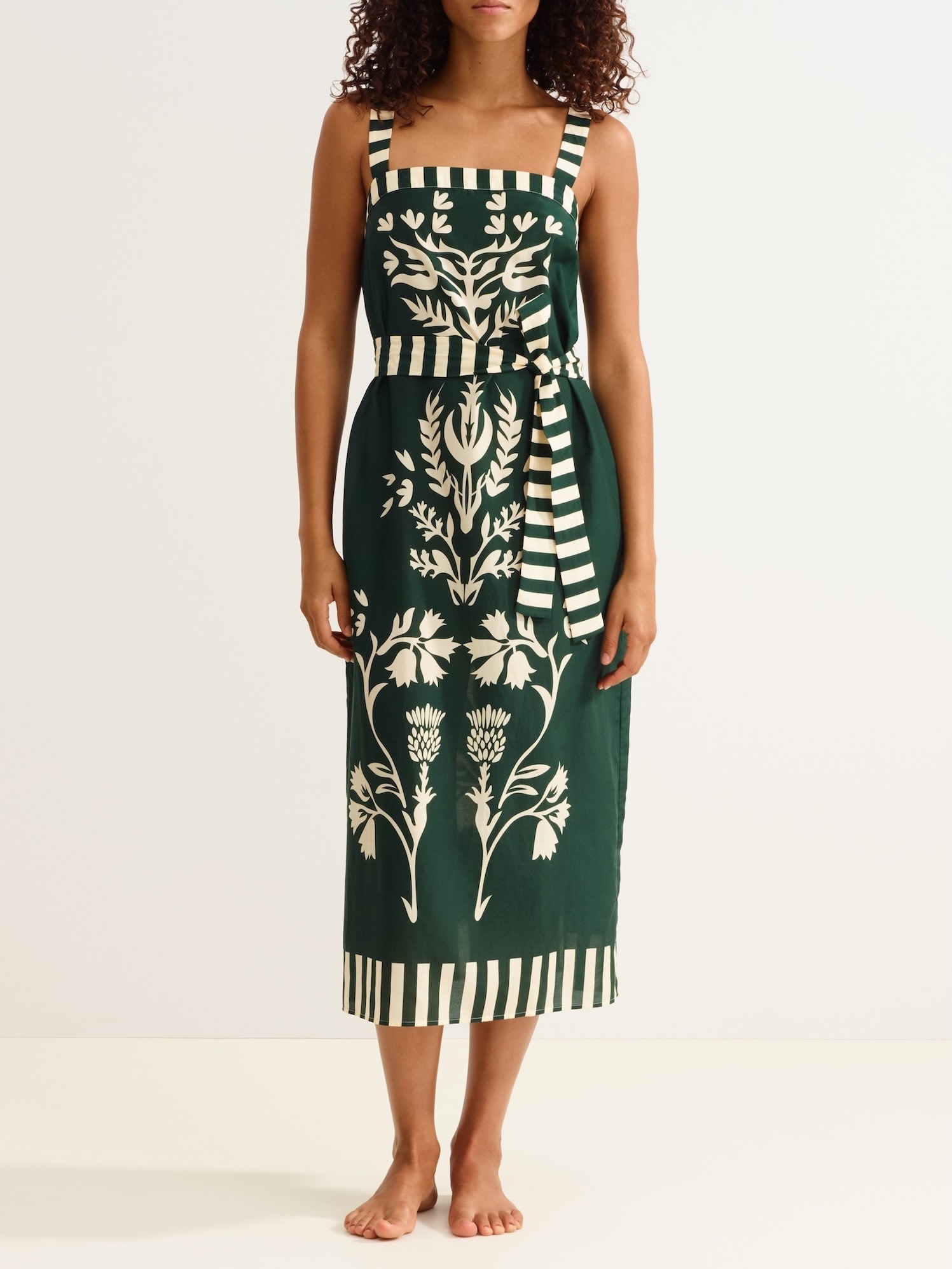 Lakshya by Eres is a long dress in silk and cotton, elevated by a placement print and trendy straps. Its flowing silhouette and ethereal look make it an ideal piece for long summer days or evening plans.