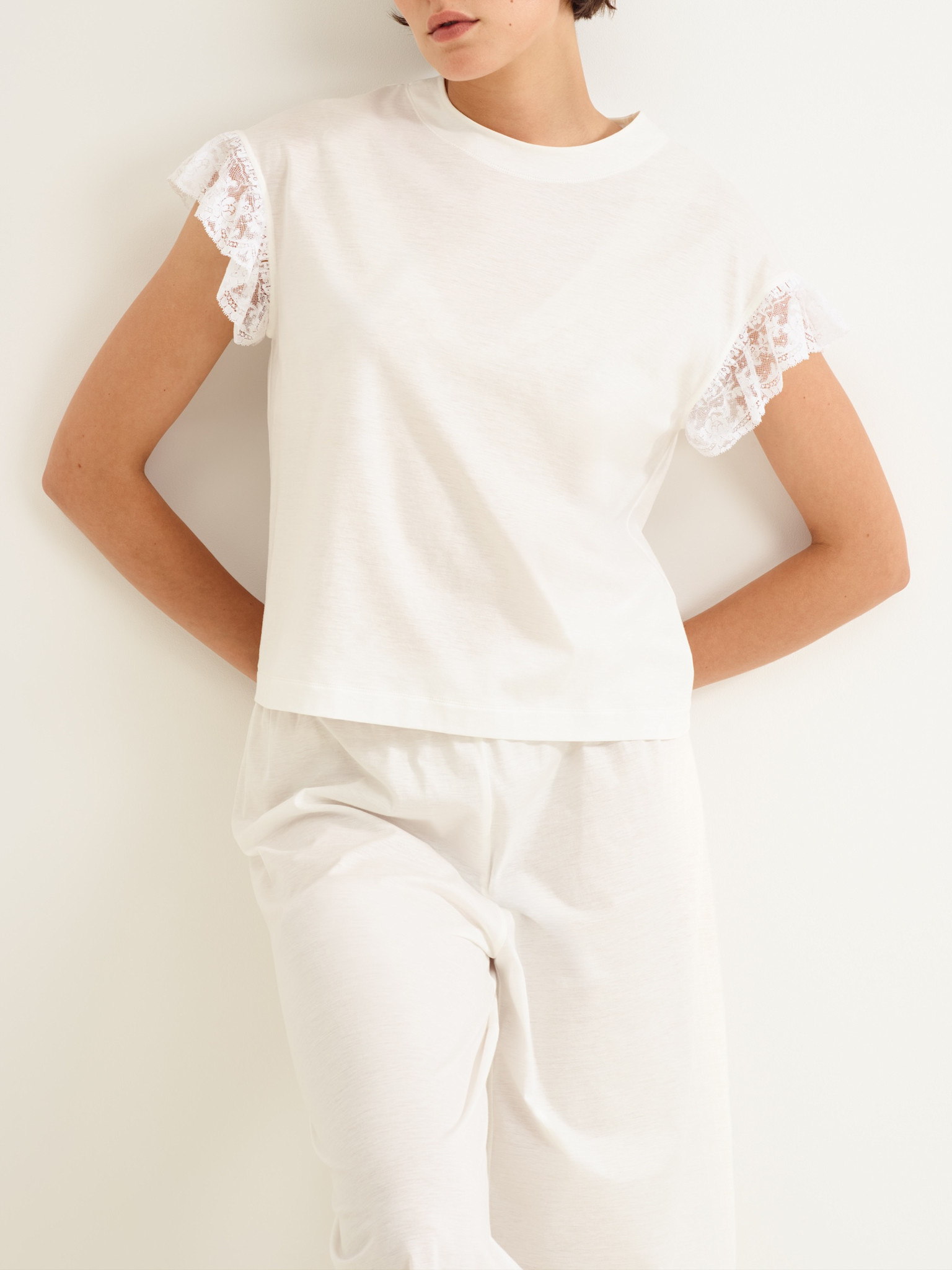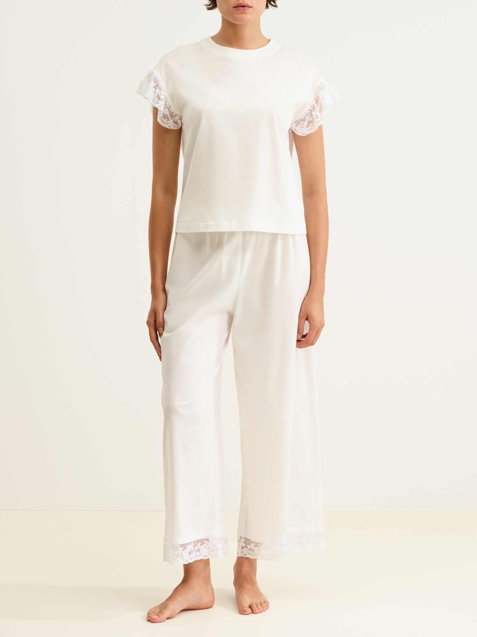 The Abricot T-shirt by Eres offers softness and femininity thanks to its cotton jersey fabric and lace trims.