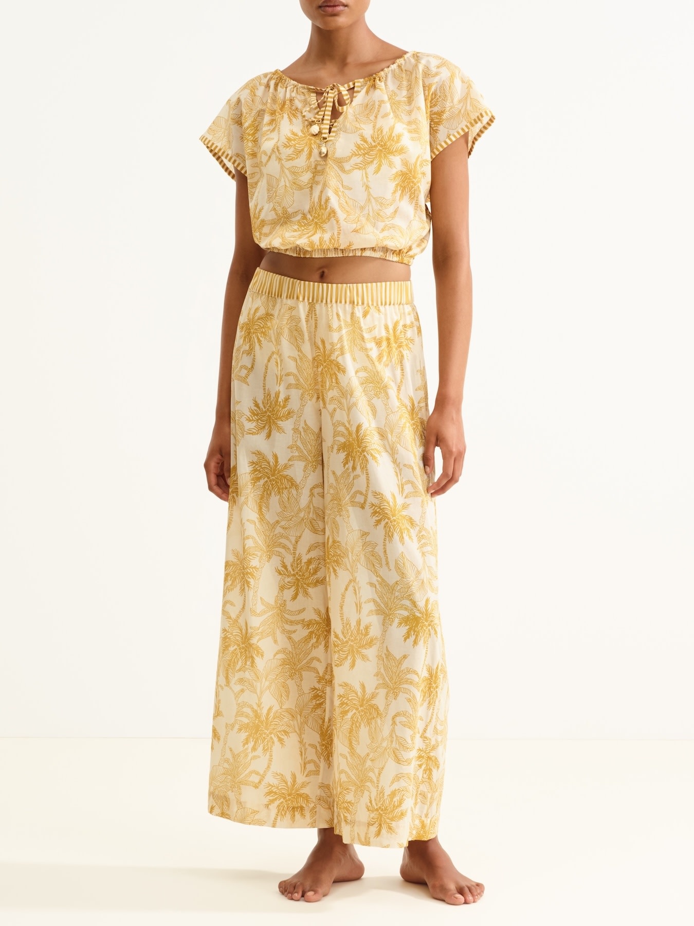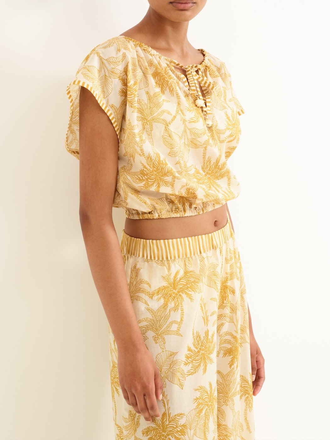 The elegant Crocodile top by Eres is embellished with the Voyage themes palm tree print. It's made from cotton voile that combines comfort and sophistication.