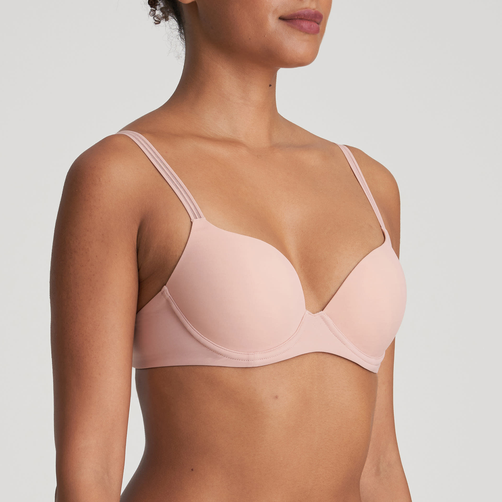This padded bra by Marie Jo is the ultimate comfort bra. It is made in spacer fabric and covered with gossamer and soft microfibre. Thanks to the light, breathable fabric, this is a winner in your lingeriedrawer. Thanks to the smooth cups, you can wear this bra perfectly under tighter and thinner clothes.