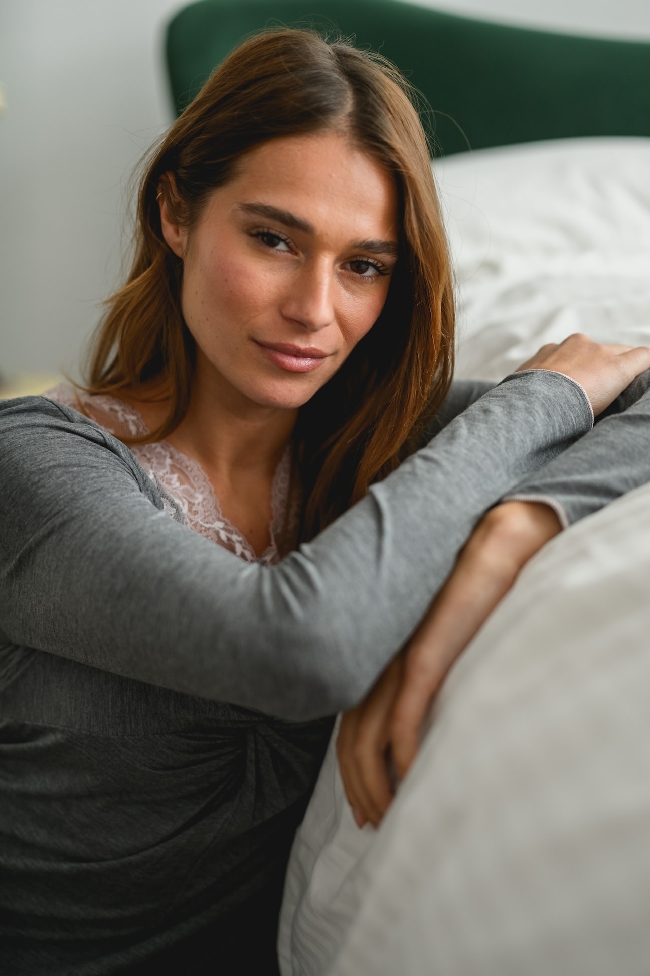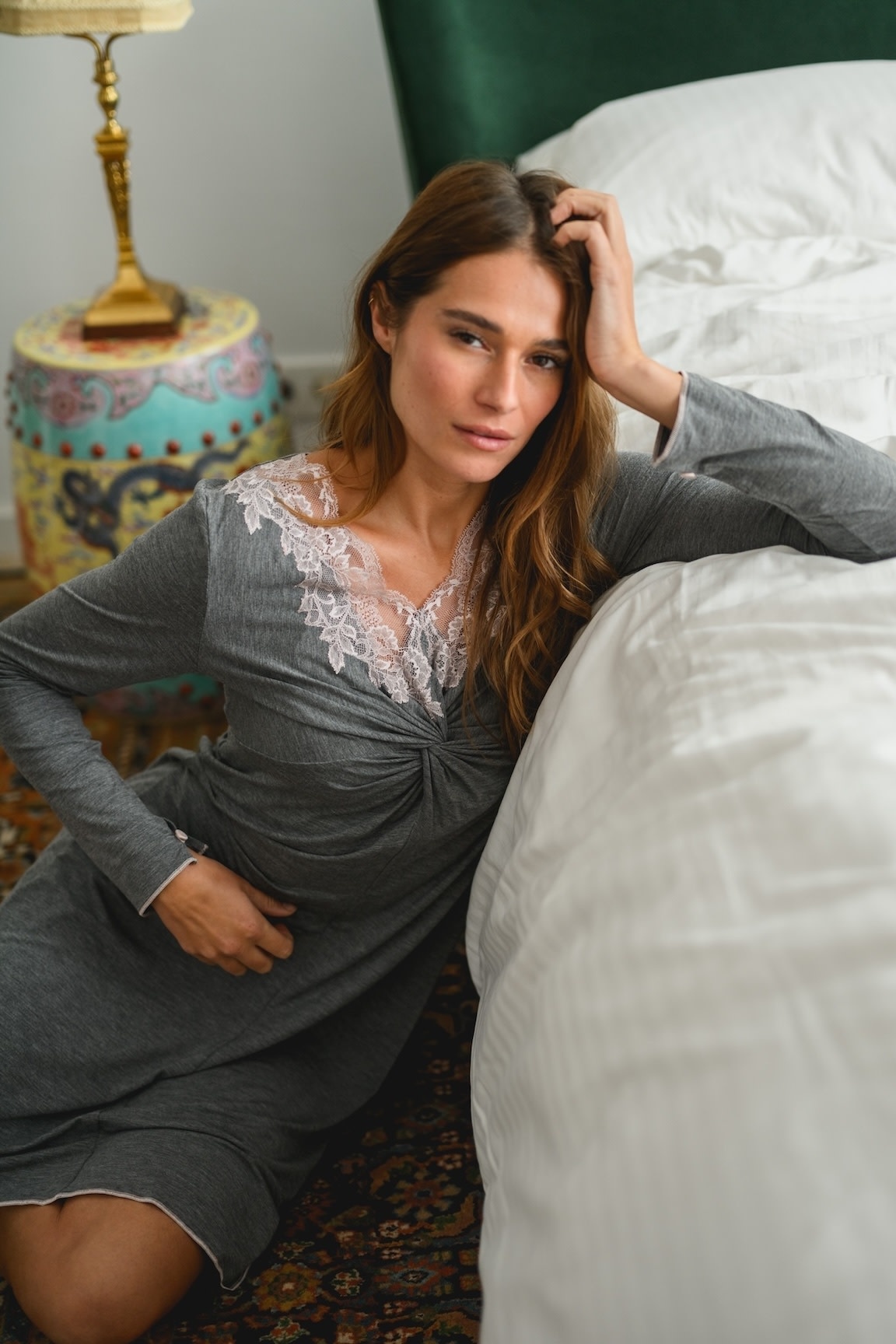 Experience the pleasure of the flowing fabric of this short nightdress by Paladini. Finished with beautiful lace at the neckline and a flattering length that falls just above the knee.