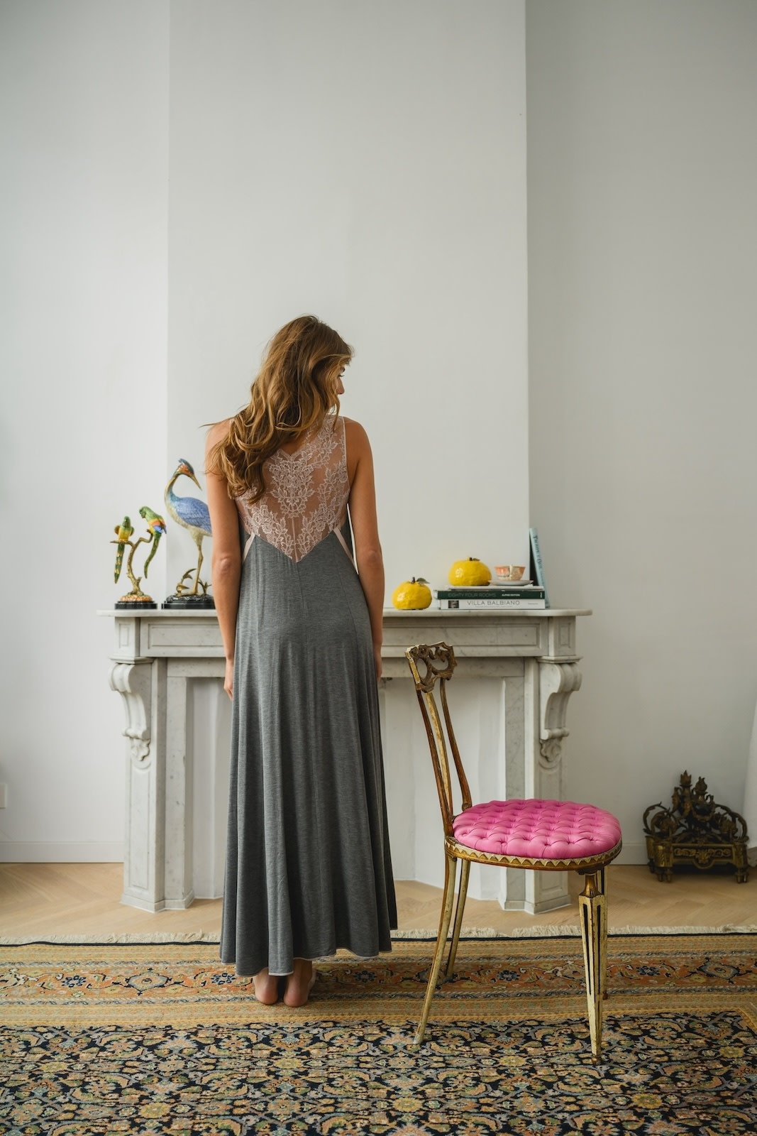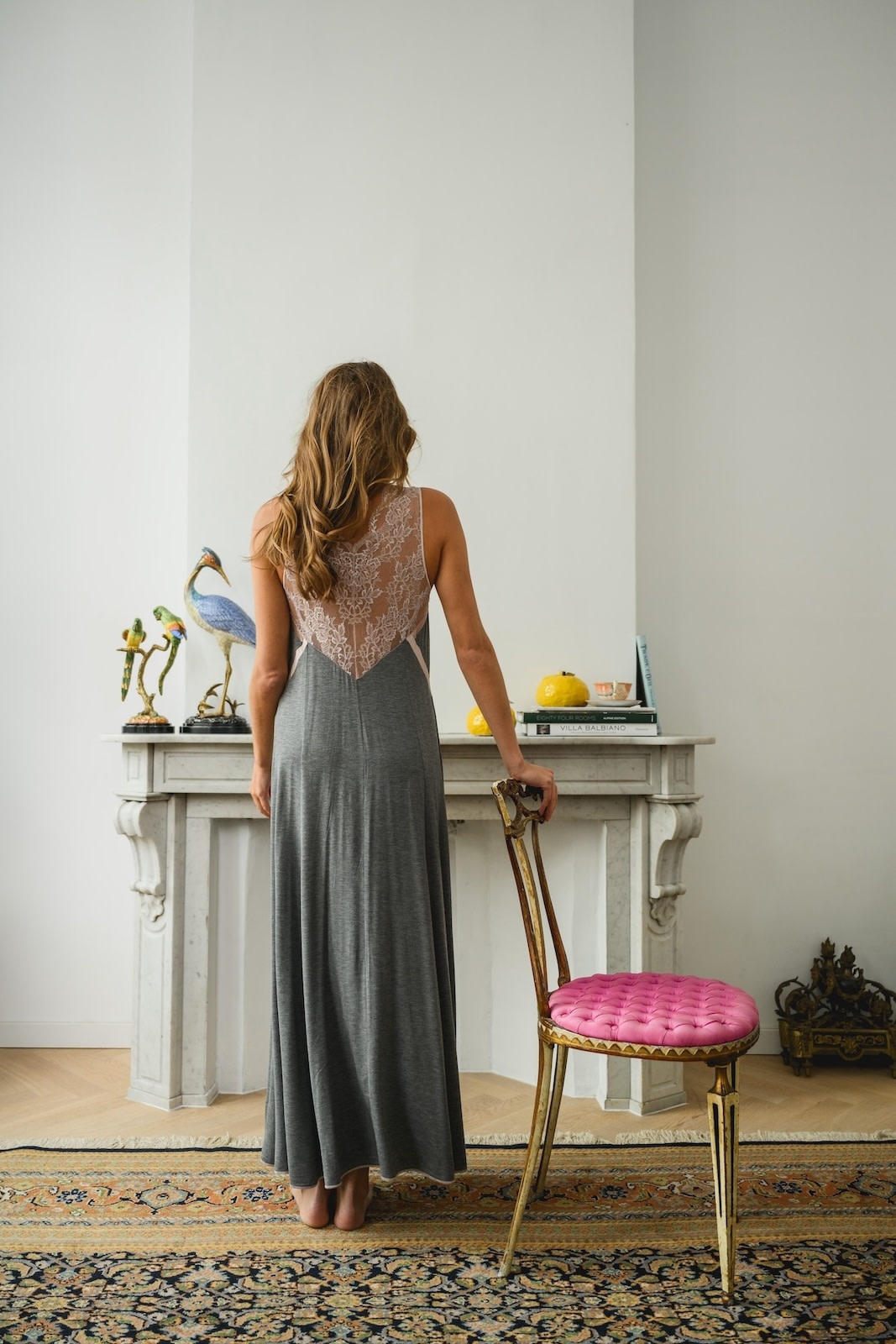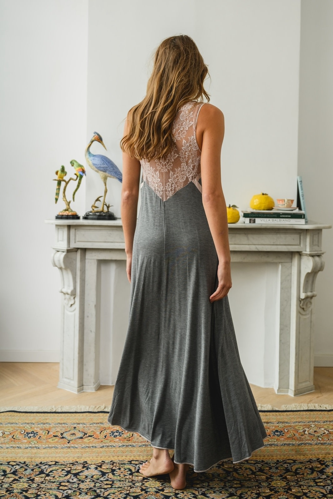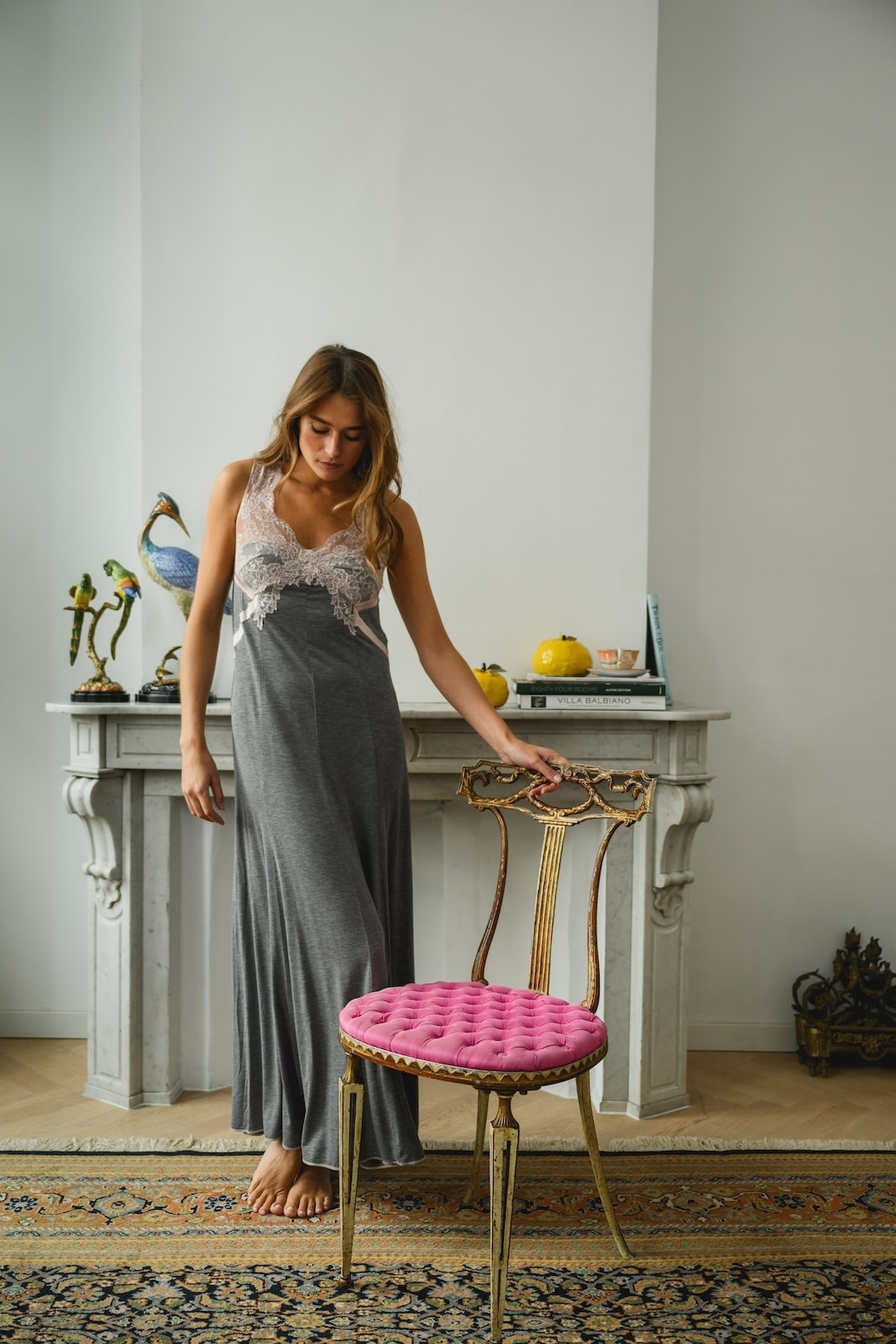 Experience the pleasure of the flowing fabric of this Paladini nightdress. Finished with very beautiful lace on the décolleté and back for a stunning look.