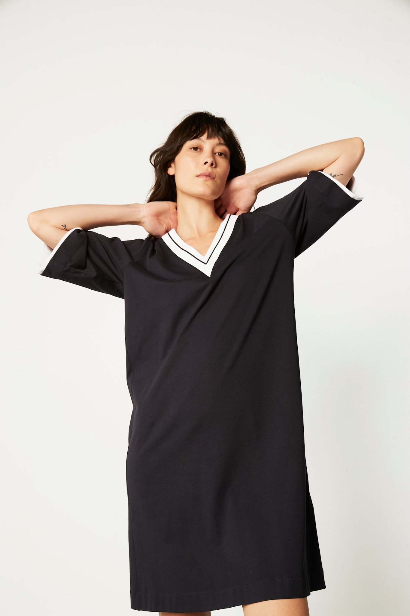 Soft, summery, and incredibly comfortable. This short dress by Pluto is so comfortable and practical that you can wear it both day and night. Made of 100% cotton, this dress is perfect for warm summer days and nights.