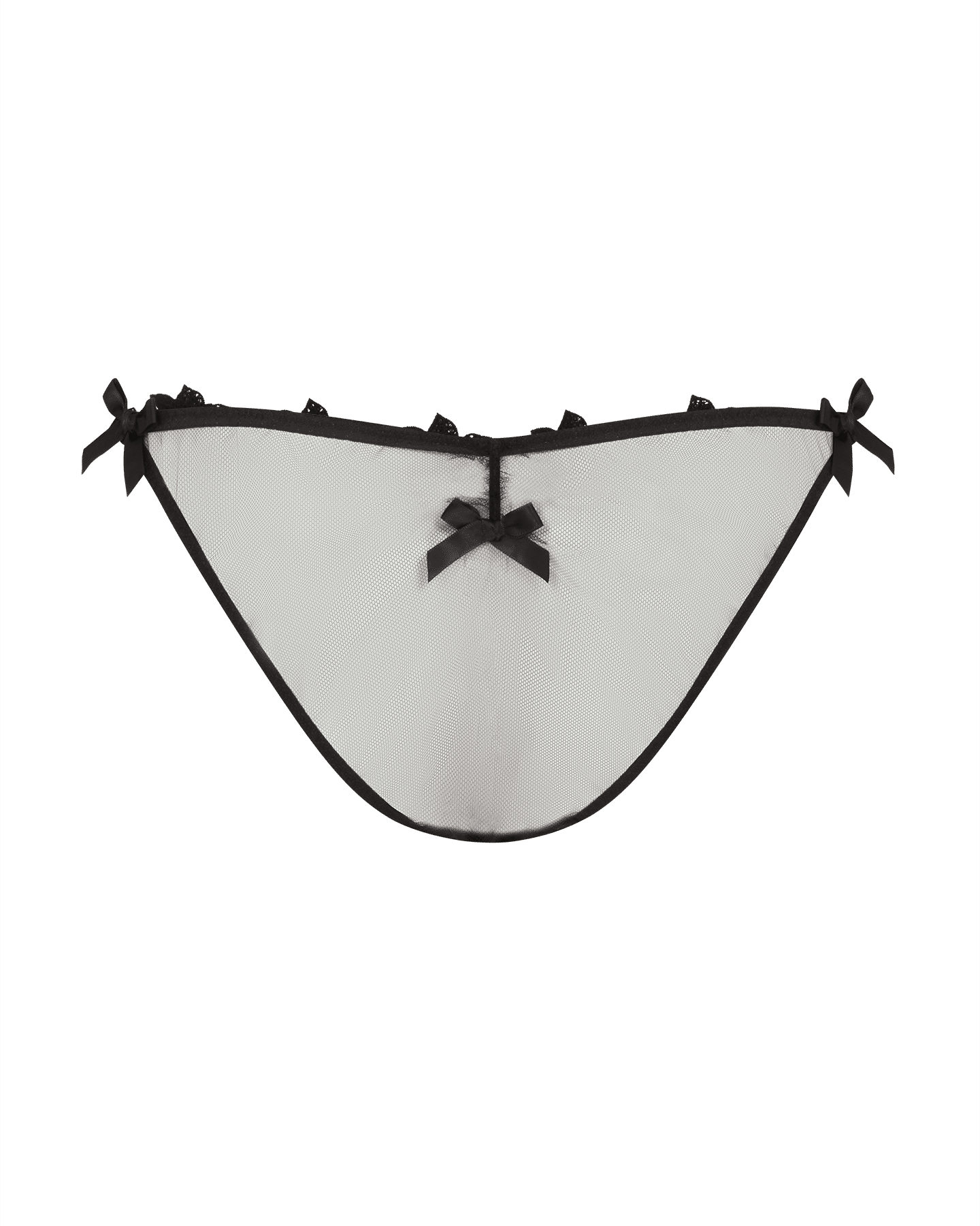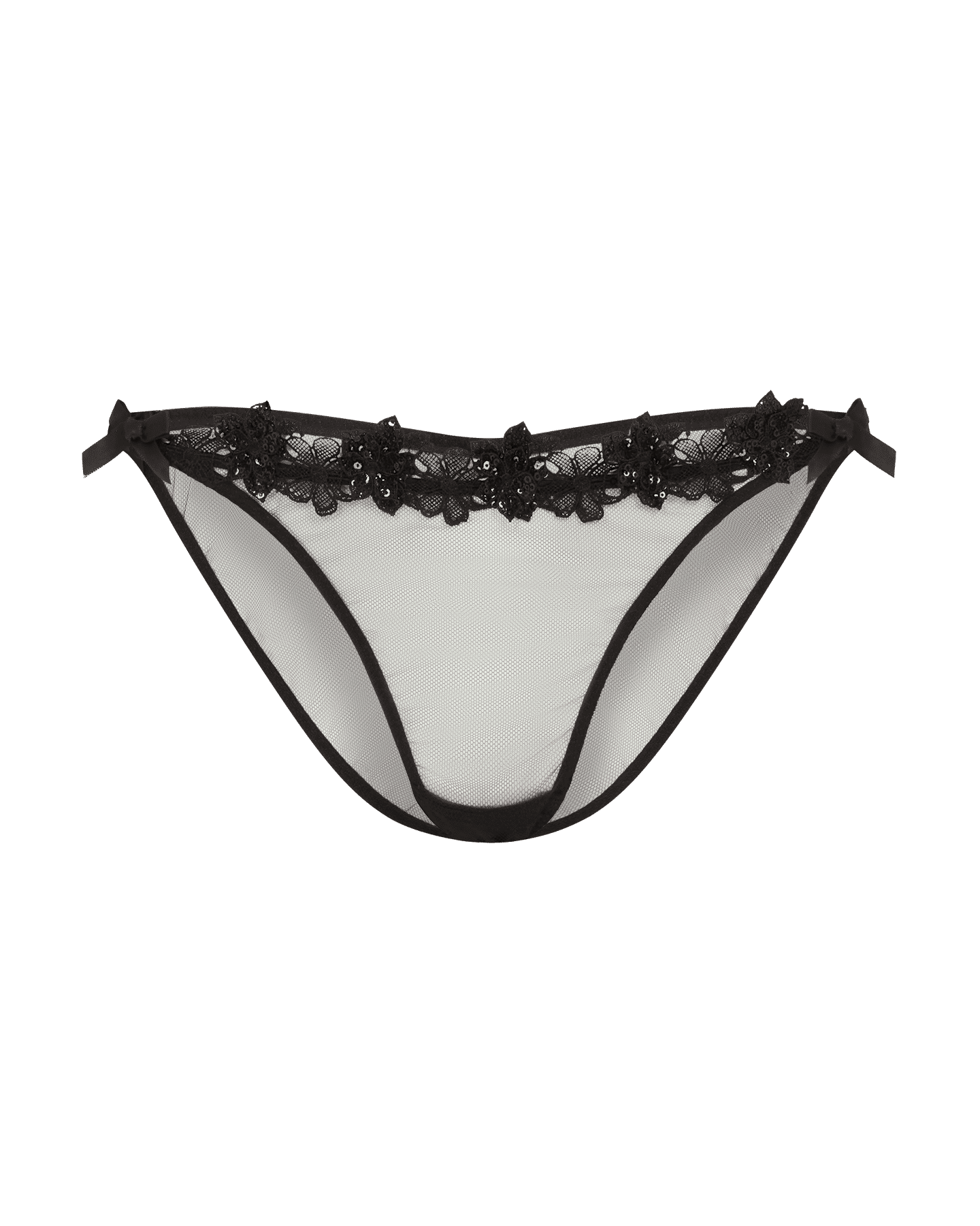 Dit laag uitgesneden slipje van Agent Provocateur heeft een elegant, tanga-achtig silhouet. Panelen van tule zijn versierd met geborduurde bloemen, terwijl dubbele zijbandjes, een geplooide achterkant en satijnen strikjes een speelse afwerking geven.