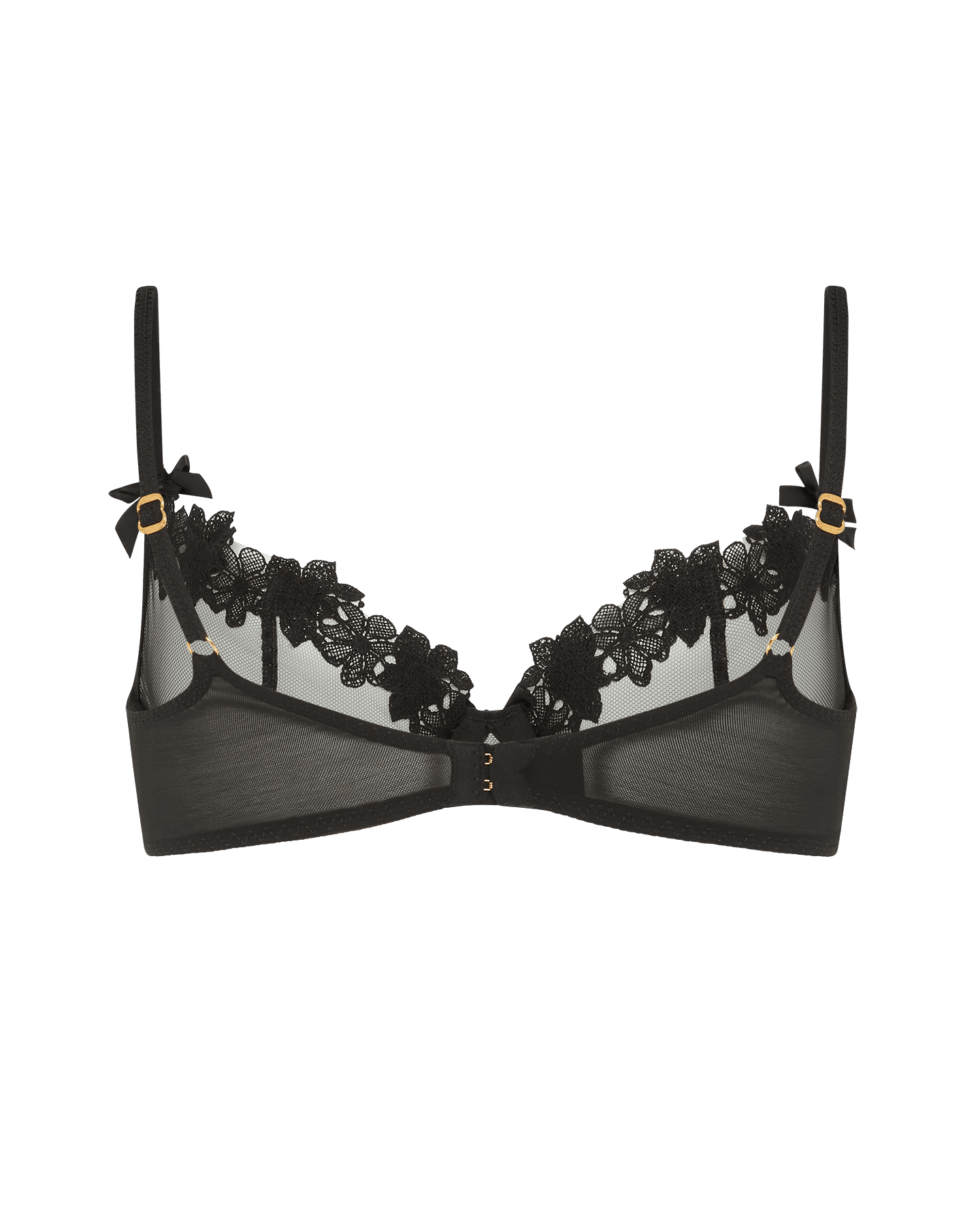 Deze sexy beugelbeha van Agent Provocateur is afgewerkt met prachtig geborduurde bloemen en subtiele pailletten, terwijl de mesh zijpanden en baleinen een goede ondersteuning bieden. Decoratieve bandjes en satijnen strikjes maken de look compleet.