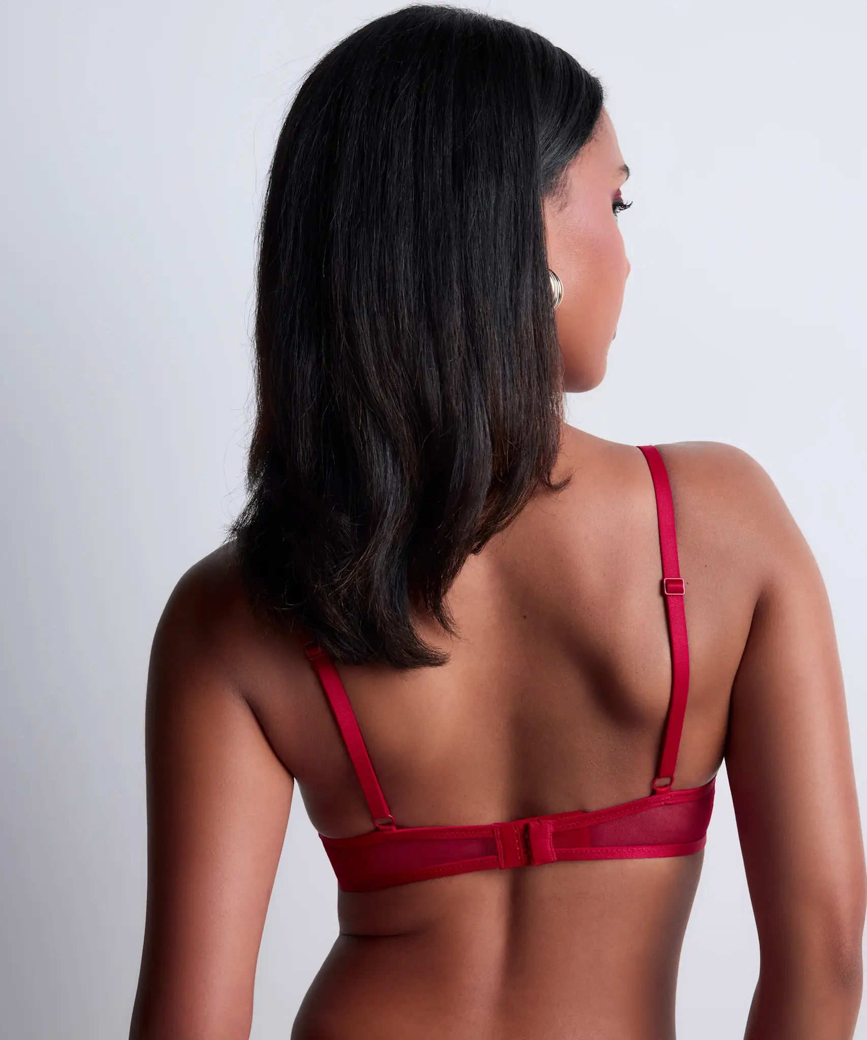 Deze verleidelijke beugel BH van Aubade is prachtig afgewerkt met borduurwerk in een hypnotiserend motief. De neklijn die tot aan de schouders loop zorgt voor een sexy, diepe uitsnijding. Deze beugel BH speelt met de stevigheid van Italiaanse tule en gouden accenten die glinsteren op de huid.