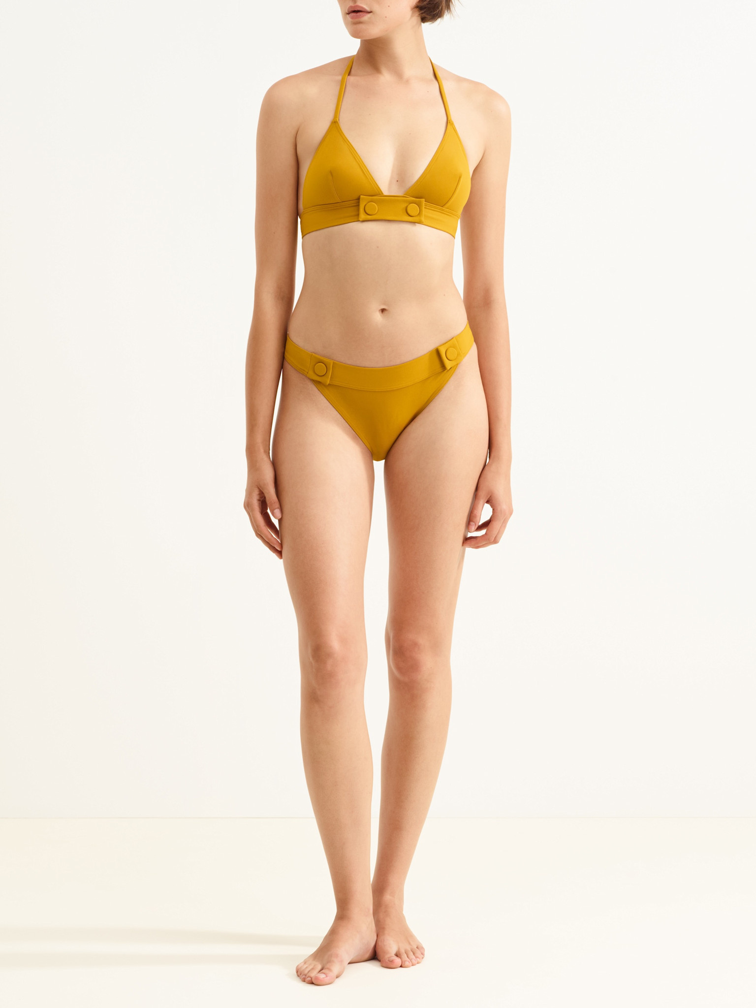 Stijlvol en eenvoudig: het Bord triangel bikini-topje van Eres heeft twee drukknopen tussen de cups, die doen denken aan het uniform van een scheepsbemanning.