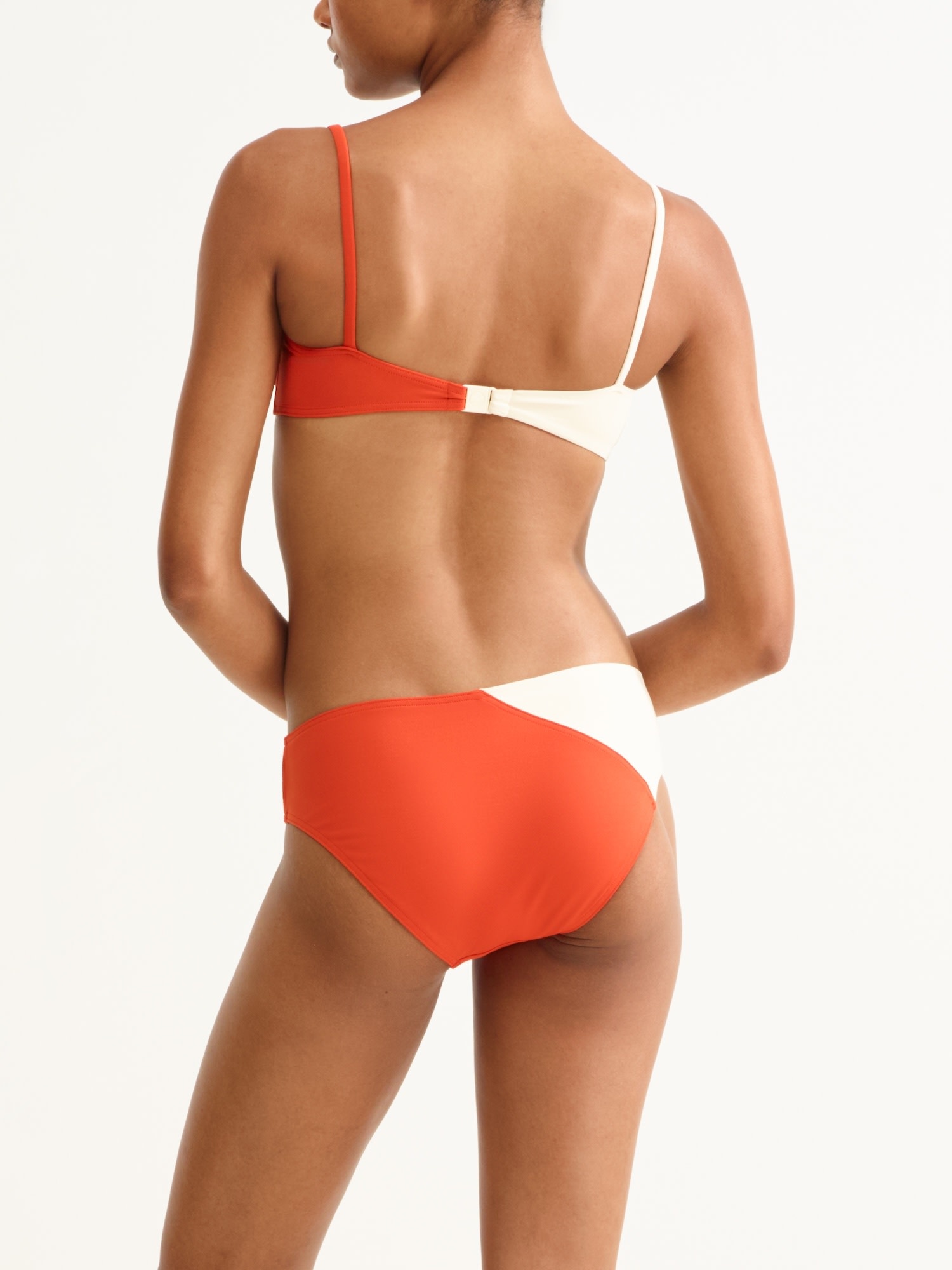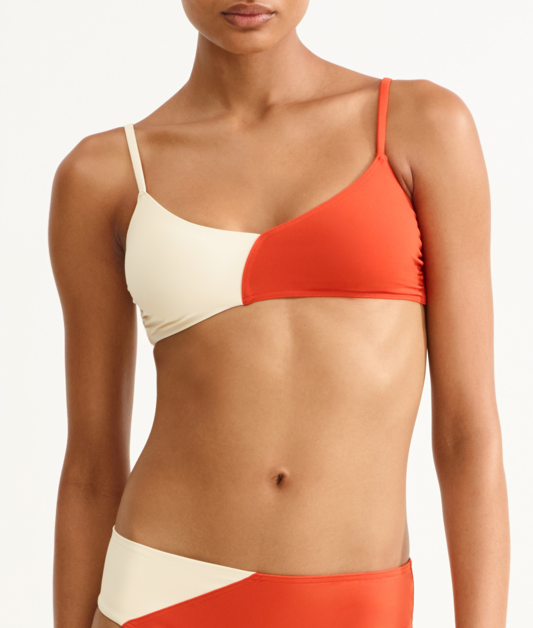 Het Dualité triangel bikini-topje van Eres heeft een tweekleurig, gekruist design met een gelaagd effect en een diepe halslijn. Dankzij de grafische uitstraling flatteert het topje elk figuur. De dunne bandjes en de baleinen aan de zijkant voegen een vleugje elegantie en vrouwelijkheid toe.