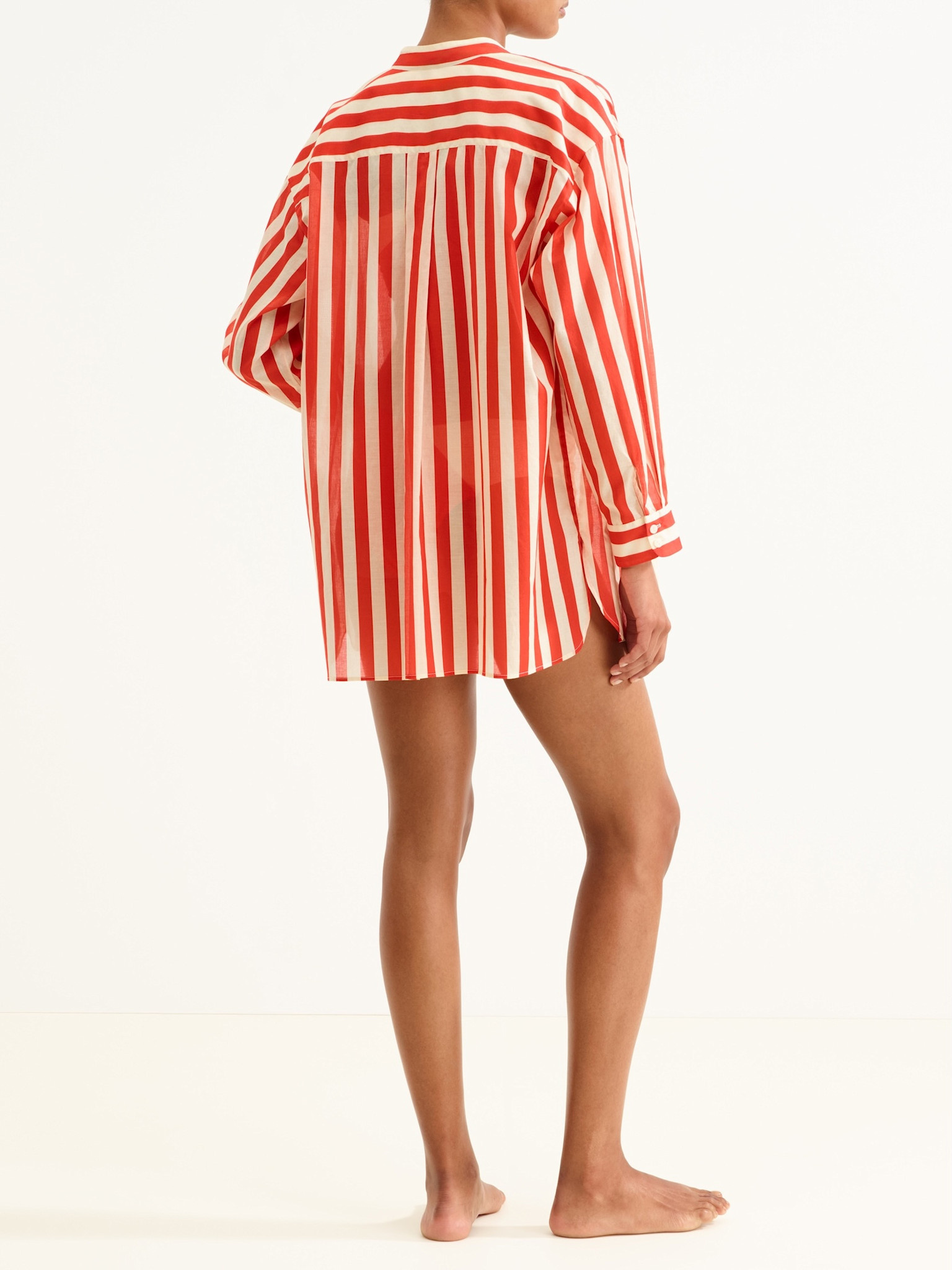 Duetto is een lange blouse-jurk van Eres, gemaakt van lichte, gestreepte katoenen voile, die uw zomeroutfits een elegante touch geeft. De lange mouwen en de knoopsluiting zorgen voor een verfijnde look die zowel geschikt is voor het strand als voor de stad.