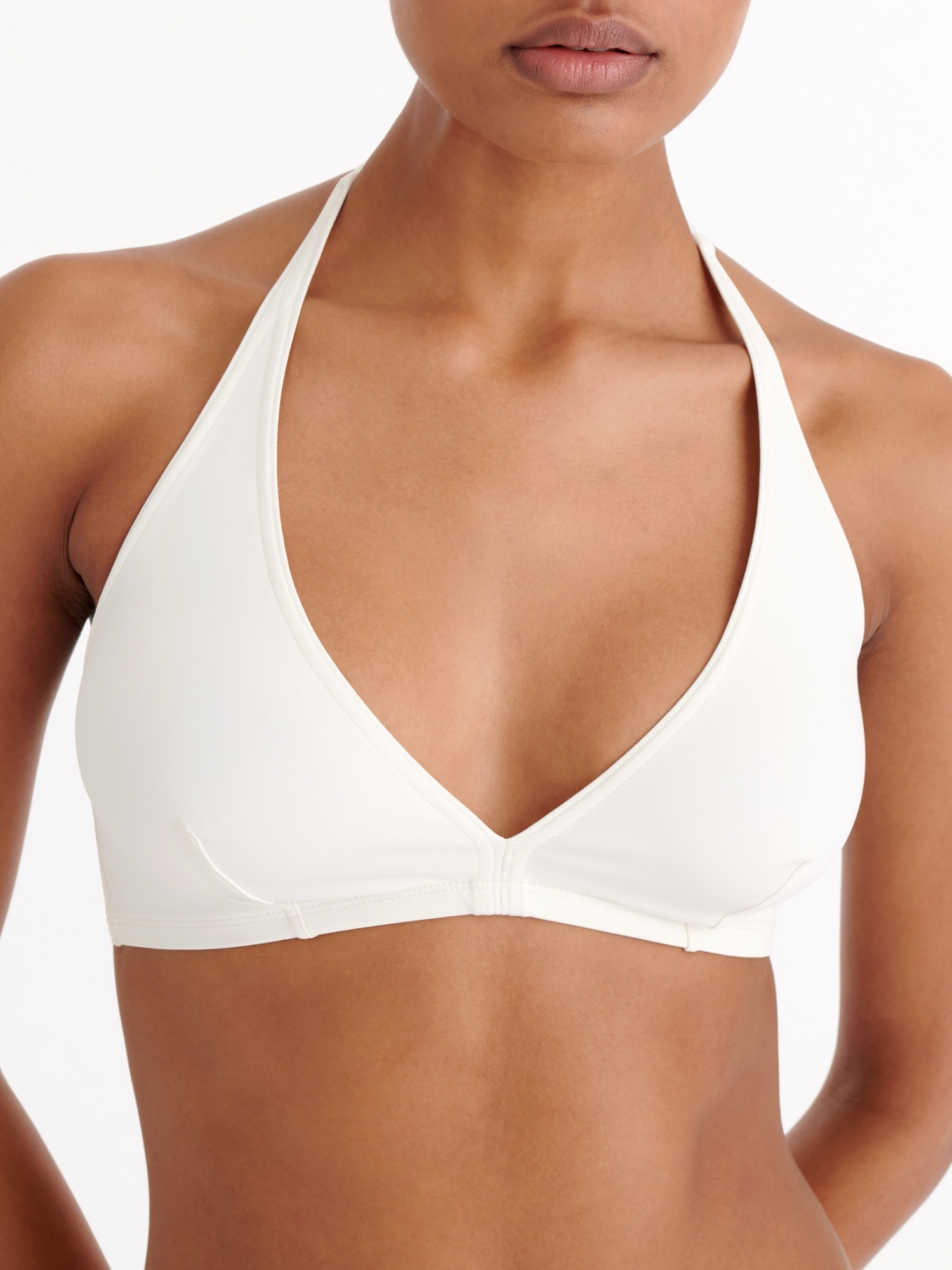 Deze iconische triangelbikini-top met volledige cup uit de Essentiels collectie van Eres heeft dunne bandjes die u in de nek strikt. De naden en extra versteviging langs de zijkanten garanderen een optimale ondersteuning en maken dat deze bikini-top ook voor grotere bustes perfect past!