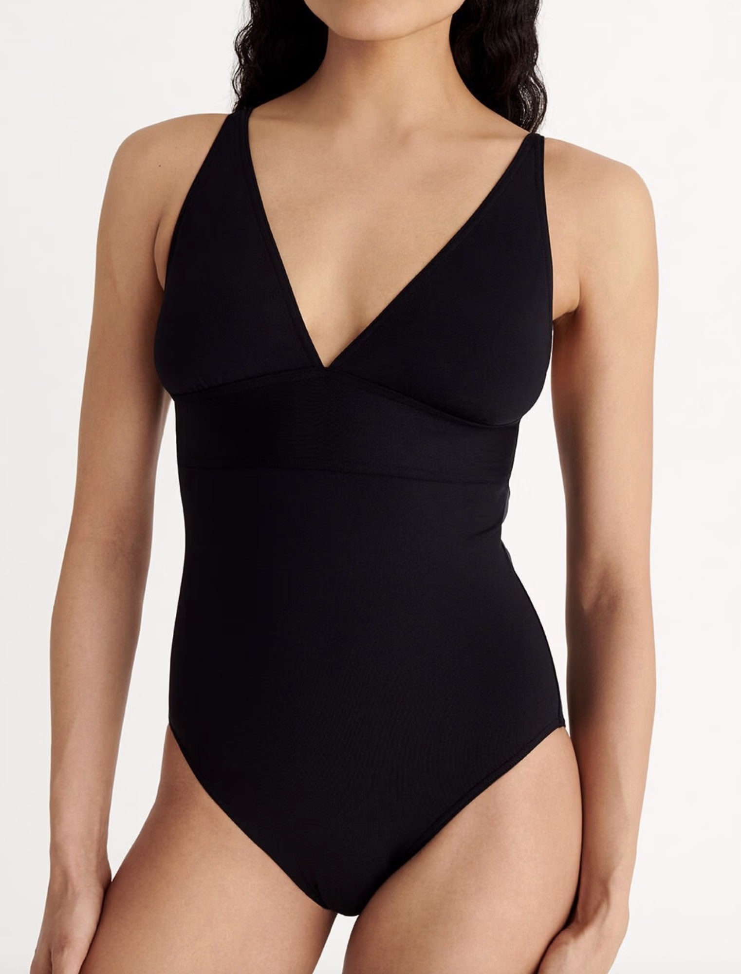 Dit iconische badpak uit de Essentiels collectie van Eres met dunne rechte bandjes heeft een diepe, grafische en vrouwelijke V-hals. Een perfecte combinatie van een prachtig decolleté en een comfortabele pasvorm. Met een brede band onder de buste die de taille accentueert.