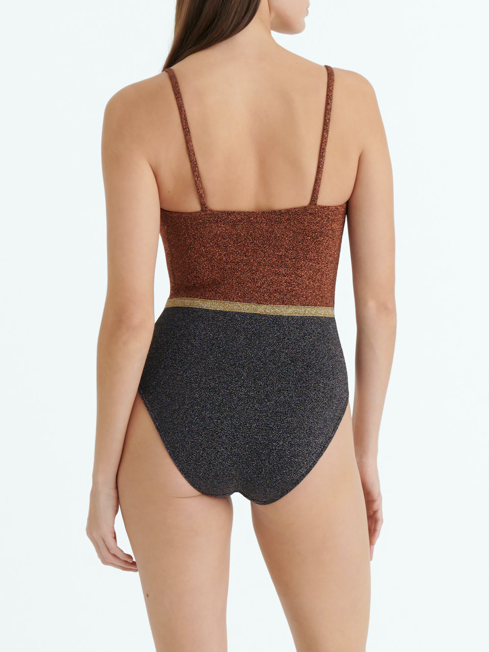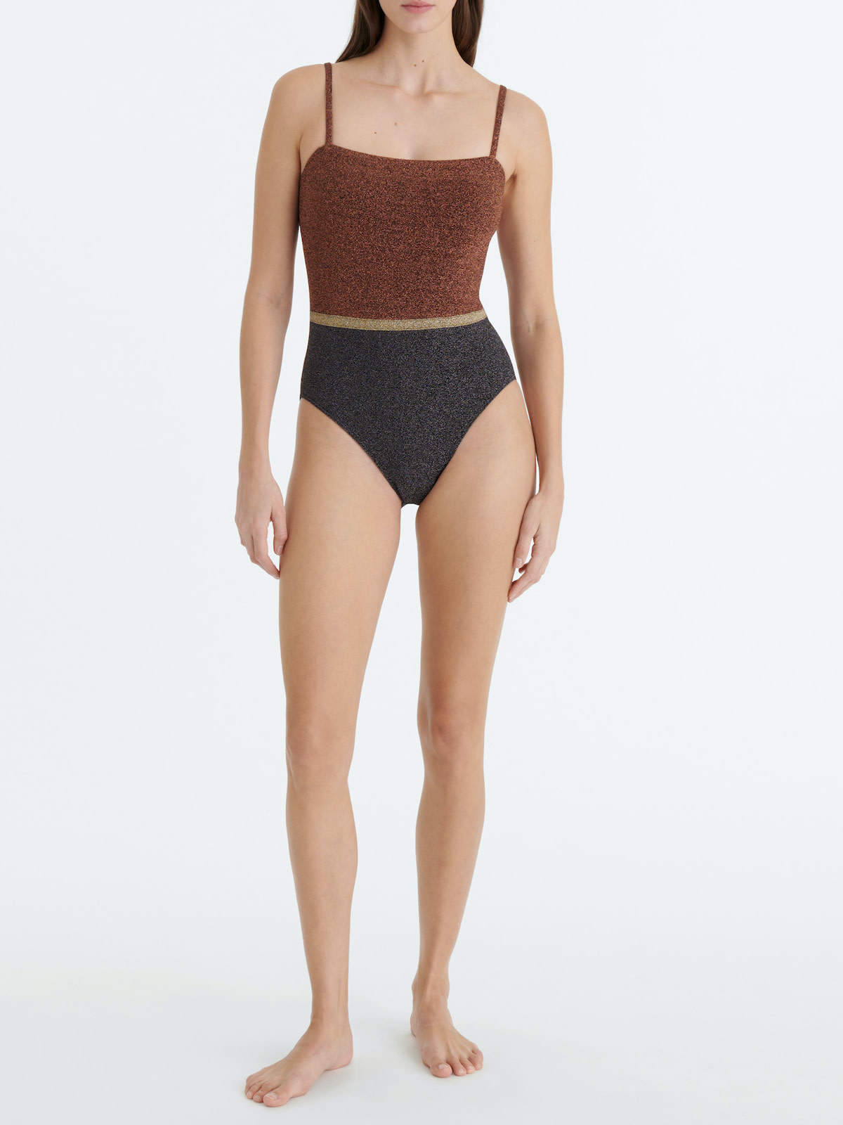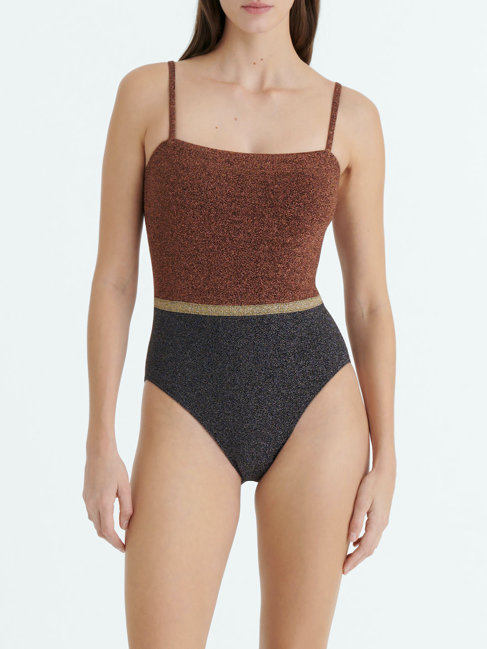 Dit iconische badpak van Eres wordt geprezen om zijn minimalistische lijn. Met rechte rug en dunne bandjes, is dit badpak een favoriet van velen! De sprankelende stof en prachtige kleurencombinatie maakt van dit badpak een onmisbaar stuk!