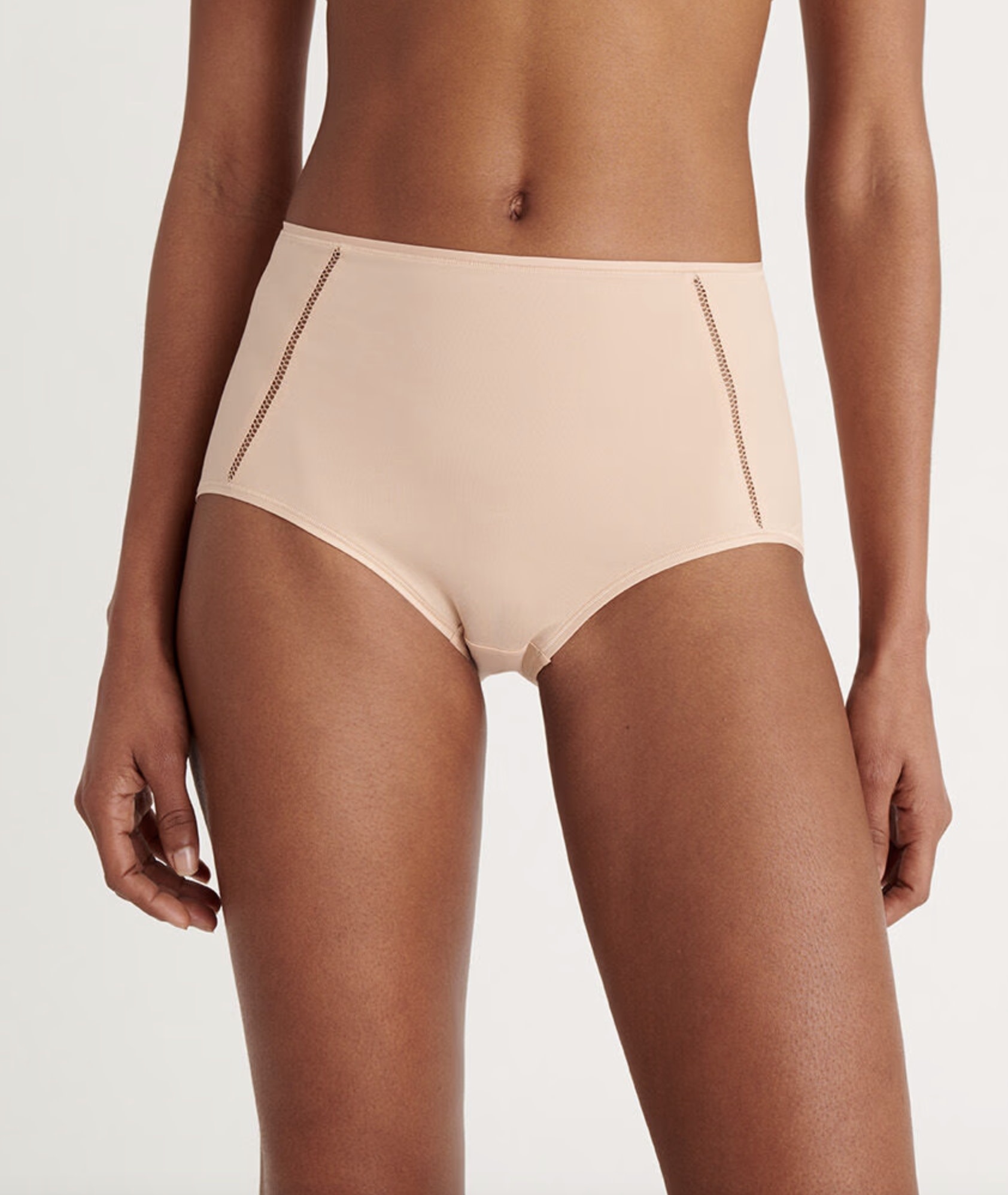 De hoge tailleslip Brina biedt een echt tweede huideffect en kan worden gecombineerd met alle BH's uit de Jersey Soyeux-lijn en de Tulle-lijn voor een minimalistische en comfortabele look.