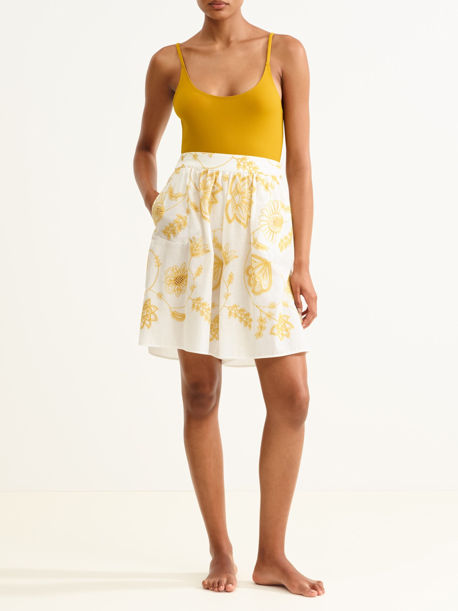 Chandra is een geborduurde katoenen bermudashort van Eres met een elastische tailleband en subtiele details. Licht en vrouwelijk, vormt deze short een perfecte aanvulling op uw zomerse topjes voor een frisse en levendige look.
