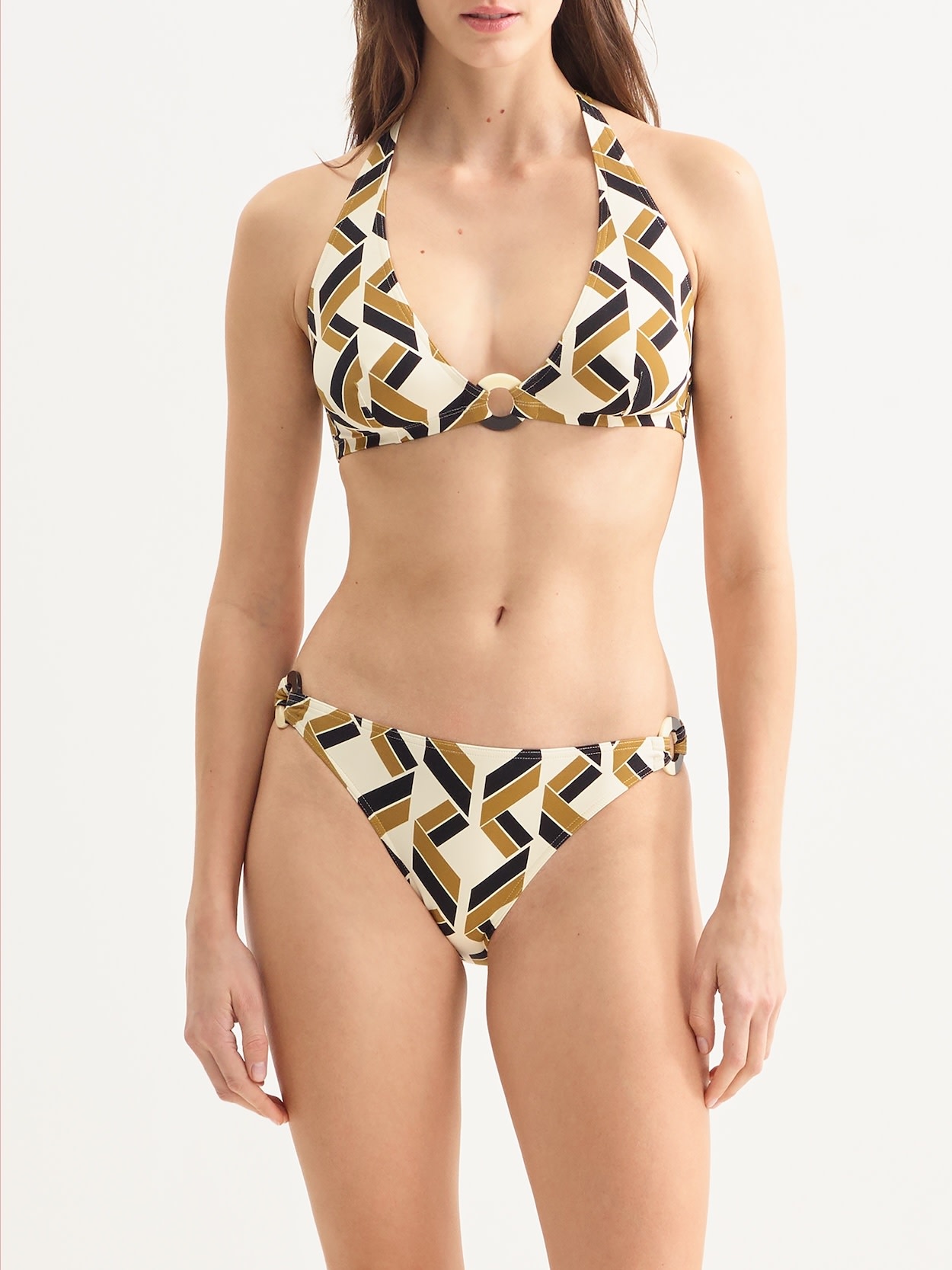 Met een psychedelische seventiesprint is het klassieke Alchimie bikini slipje van Eres universeel flatterend. De plexiglas ringdetails aan beide kanten zorgen voor een elegante en vrouwelijke touch.
