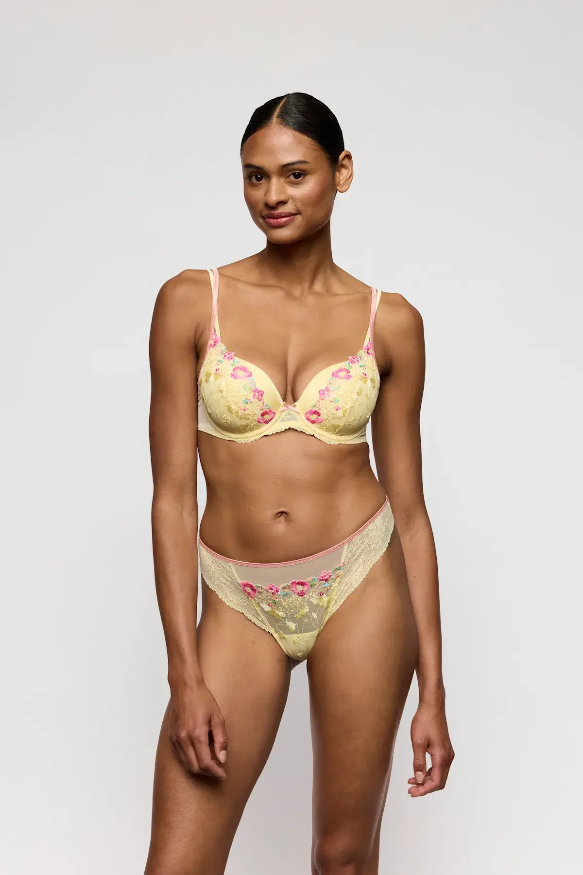 Deze comfortabele, flatterende string van Marie Jo heeft niet alleen een perfecte pasvorm, maar doet ook denken aan een zalig lentezonnetje waar u onmiddellijk goed gezind van wordt! De snit zorgt voor een vrouwelijke en romantische look waarbij de billen met kant worden omhuld.