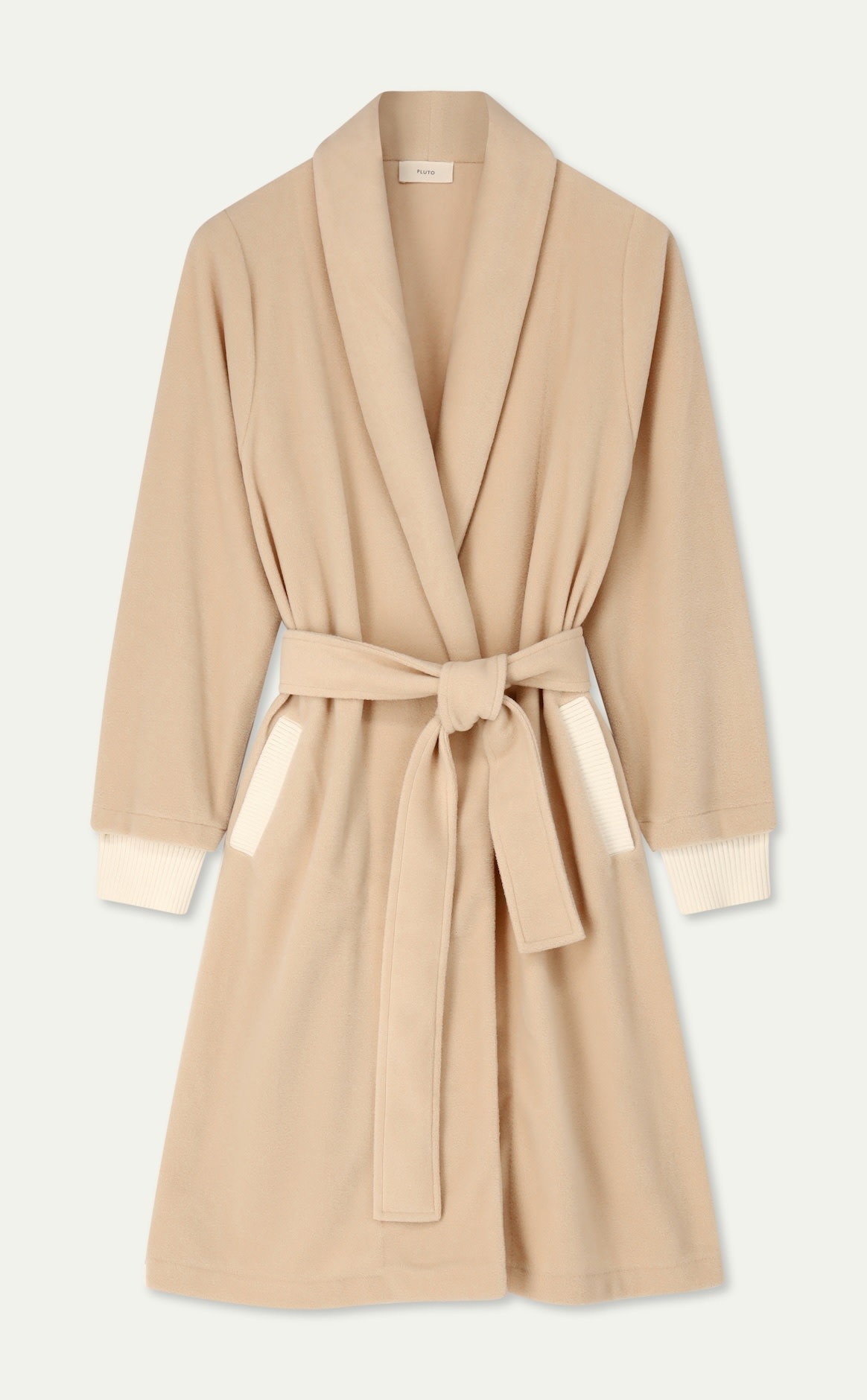 Deze zeer comfortabele kamerjas van Pluto is onmisbaar in uw garderobe! Gemaakt van een ultra zachte fleece, zal deze peignoir u verwarmen op frisse herfst- en winteravonden. De contrasterende manchetten en zakken zorgen voor een modieuze look terwijl de flatterende lengte tot net op of net onder de knie voor een trendy effect zorgt!