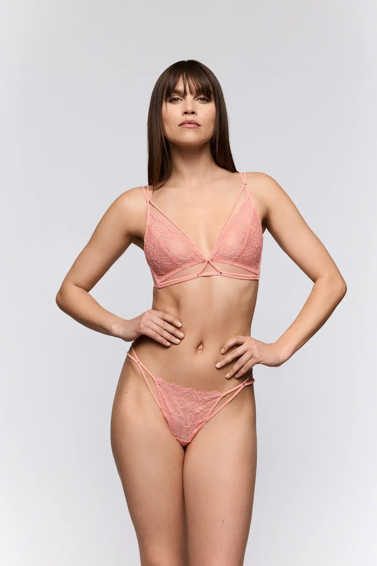 Kies voor de onweerstaanbare combinatie van kant en kristallen dankzij deze beugelloze bralette van Sarda. Het gedurfde, transparante design wordt versterkt met de opvallende dubbele bandjes.