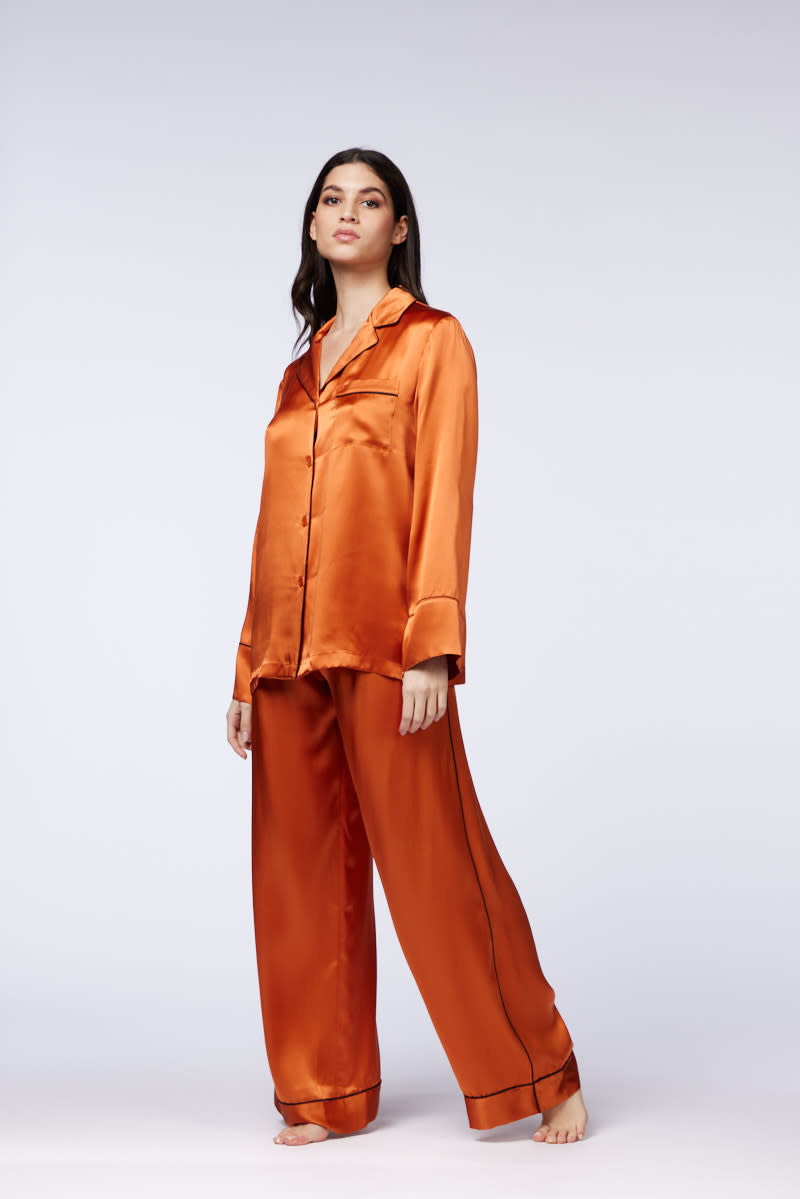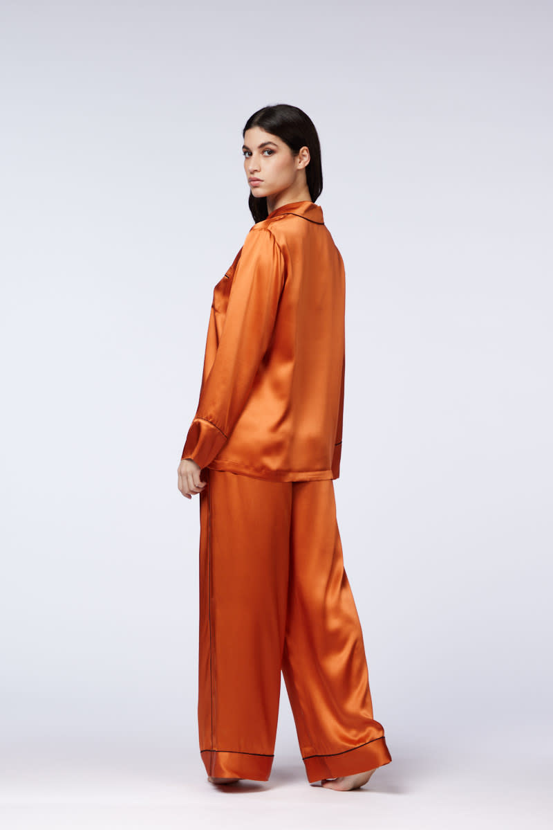 Droom weg in deze heerlijke pyjama van Vivis. De optimale pasvorm garandeert een ongeëvenaard comfort terwijl u geniet van het zachte gevoel dat zijde op uw huid biedt. Zijde past zich aan naargelang uw lichaamstemperatuur waardoor u het nooit te warm of te koud zal hebben.